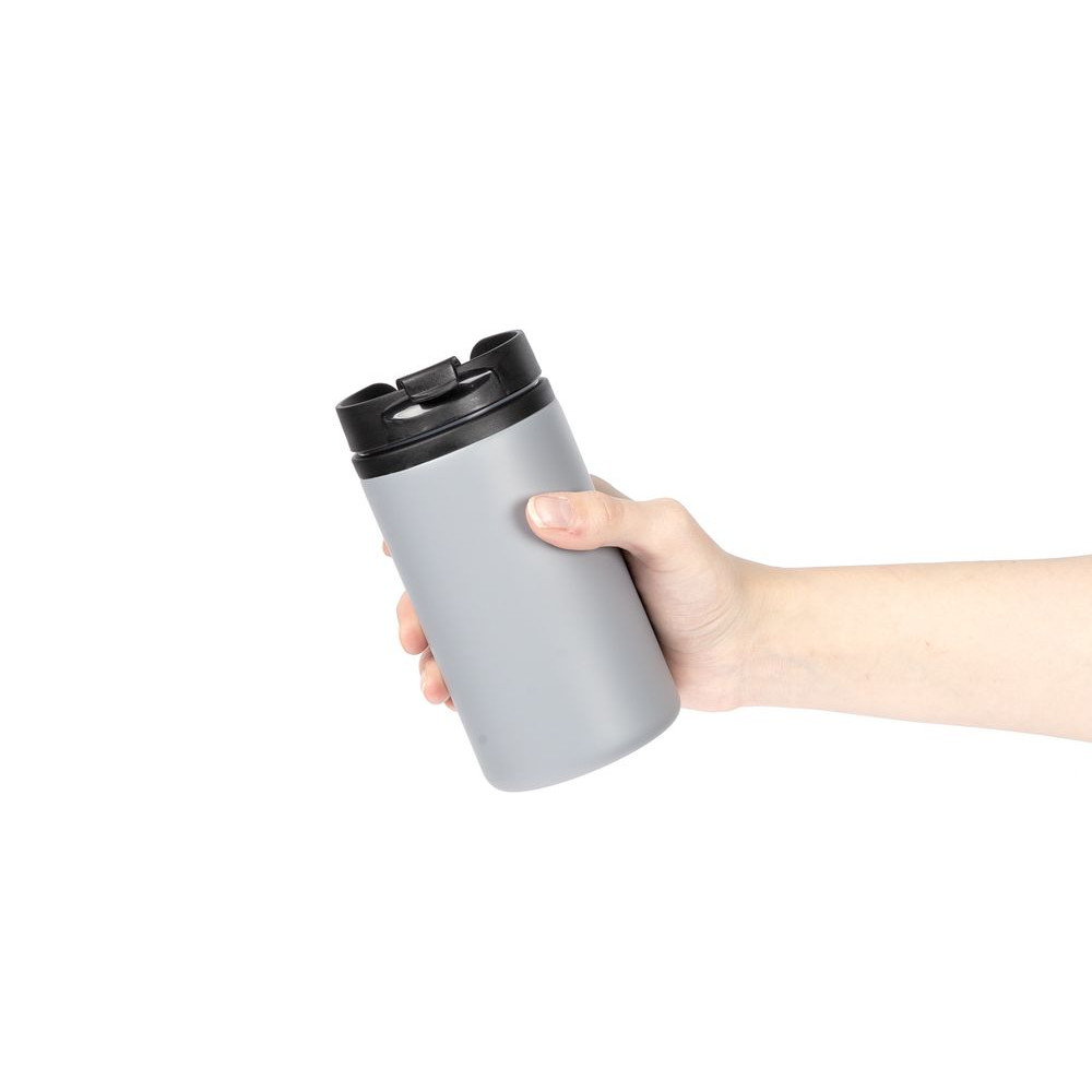 Двухслойная конструкция из пищевого пластика внутри и нержавеющей стали снаружи. Герметичная завинчивающаяся крышка с откидным клапаном для питья.