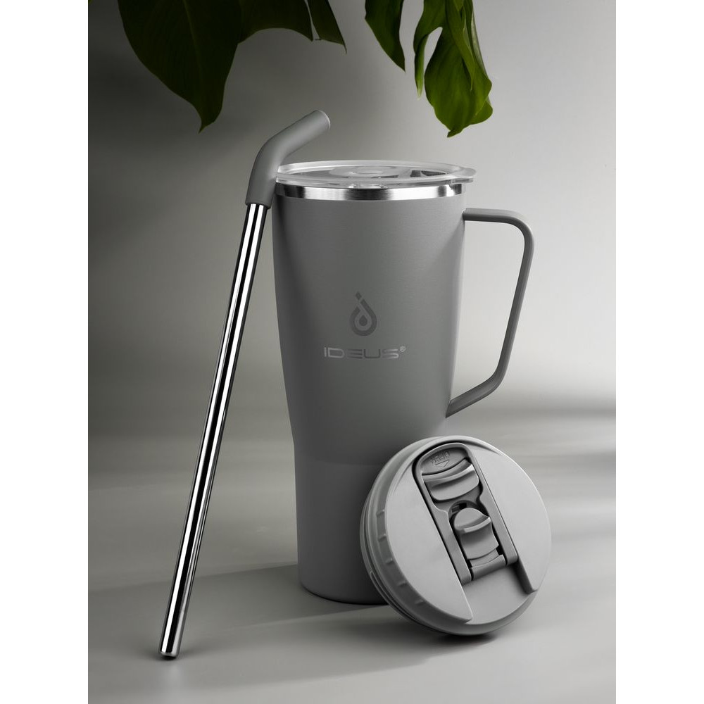 - 2 крышки в комплекте: одна на 100% герметичная с механизмом блокировки отверстия для питья, вторая — с отверстием для трубочки
