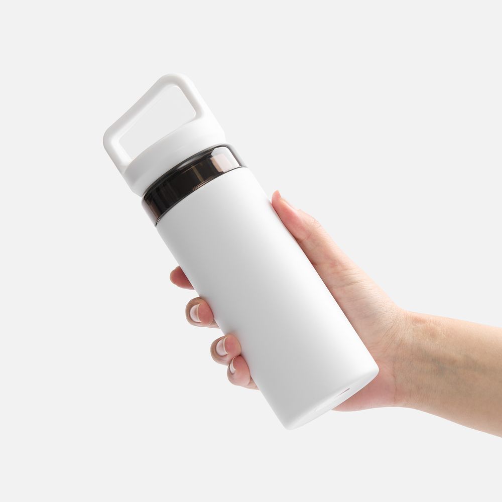 Термостакан Leval компактного размера с ситечком, удобной ручкой для переноски и надежной завинчивающейся крышкой — идеальный спутник на каждый день, готовый всегда поддерживать своего владельца горячим чаем, кофе или освежающей прохладной водой.