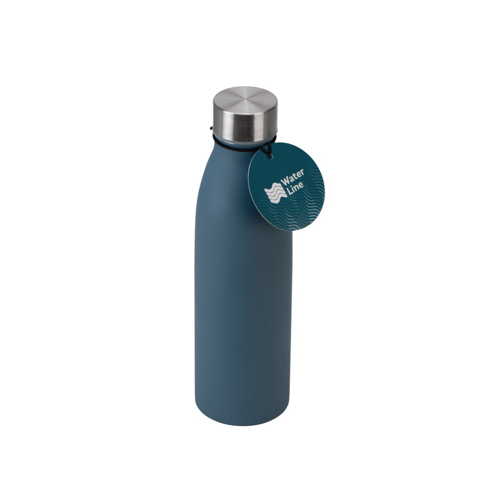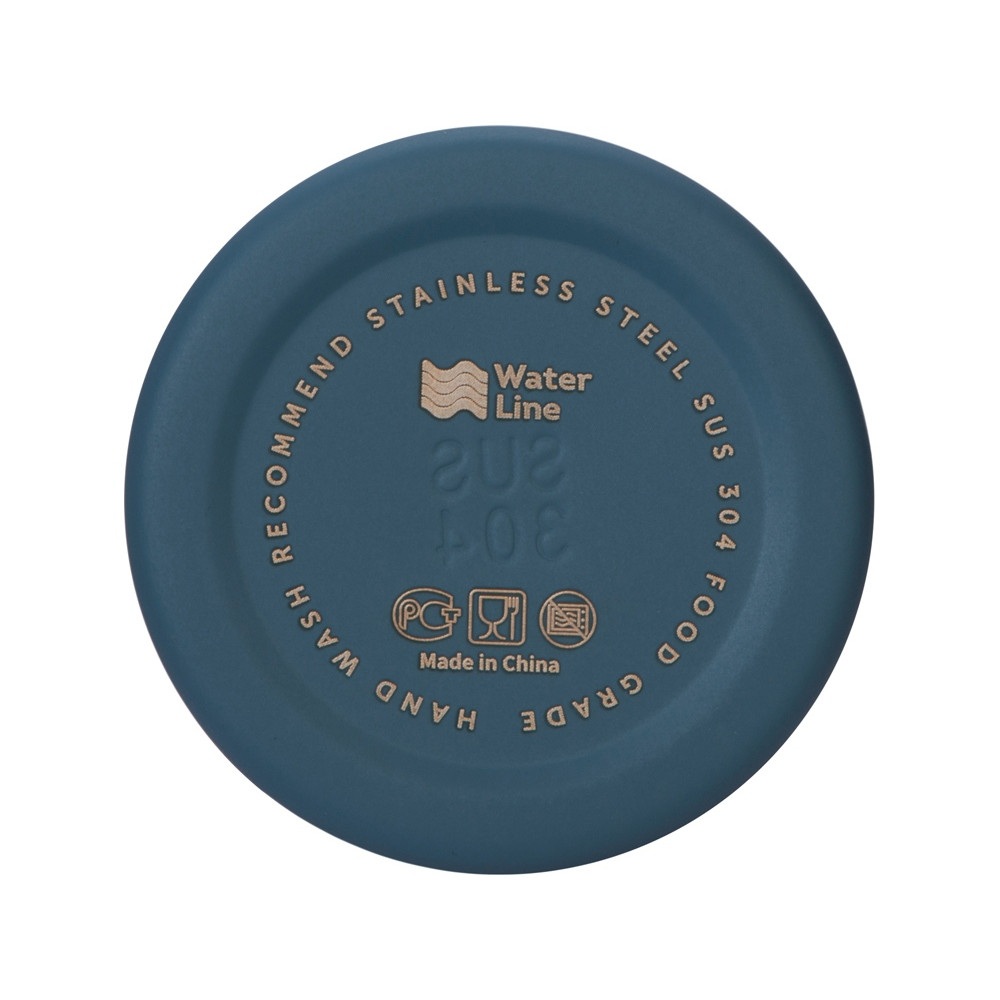 Поверхность стальной бутылки для воды Rely бренда Waterline имеет матовую текстуру. Это делает Rely интересным продуктом для брендирования. Например, один из множества вариантов - гравировка на ровной поверхности крышки.