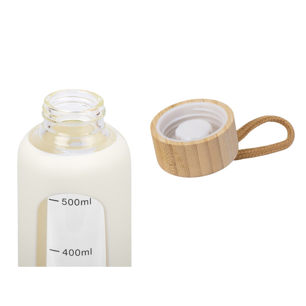 Элегантная и практичная бутылка объемом 550 мл из качественного боросиликатного стекла для ежедневного использования. - Полезные особенности: петелька для переноски, мерная шкала, мягкий нескользящий чехол - Безопасные и перерабатываемые материалы: стекло сохраняет натуральный вкус напитка, силикон гипоаллергенен - Индивидуальный стиль: завершите образ фирменным лого
