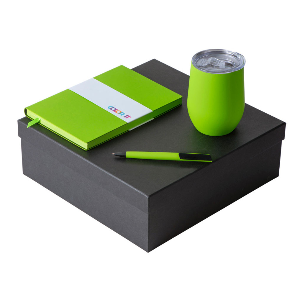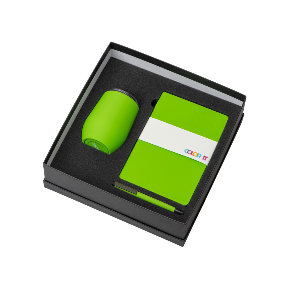 Подарочный набор c блокнотом C1, ручкой и термокружкой, зеленое яблоко