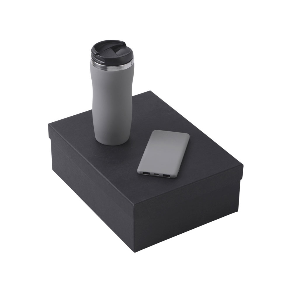Подарочный набор c вакуумной термокружкой и повербанком С1, серый