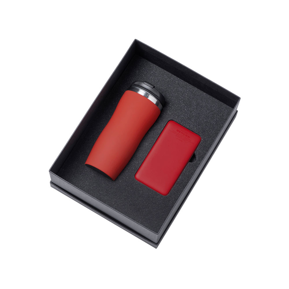 Подарочный набор c вакуумной термокружкой и повербанком С2, красный