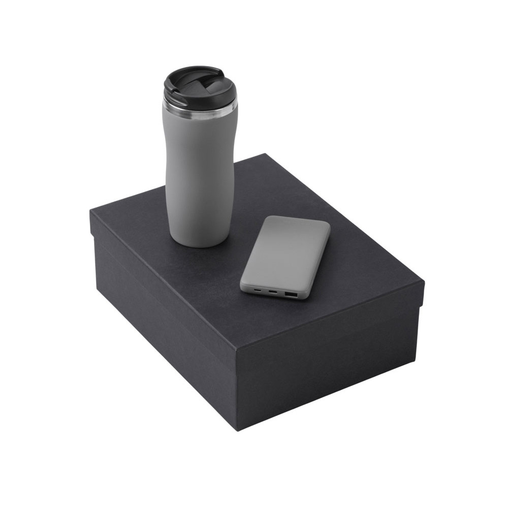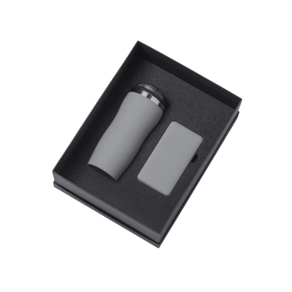 Подарочный набор c вакуумной термокружкой и повербанком С2, серый