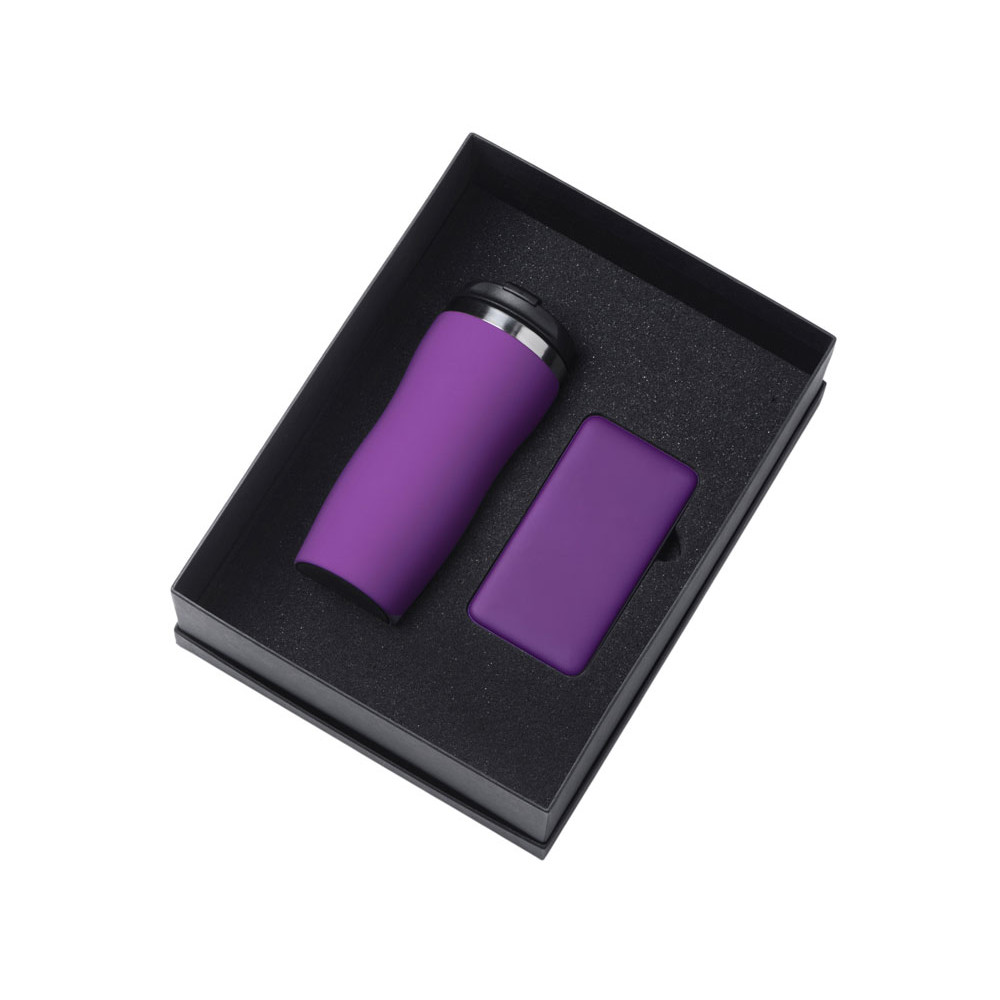 Подарочный набор c вакуумной термокружкой и повербанком С2, фиолетовый