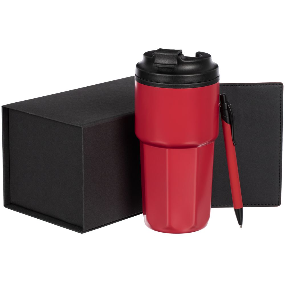 - термостакан - нержавеющая сталь, полипропилен; обложка для паспорта - искусственная кожа; ручка - металл, пластик; коробка - переплетный картон