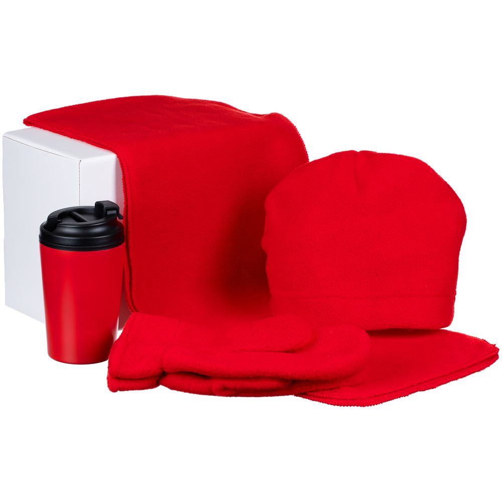 Набор Fleecy с термостаканом, красный