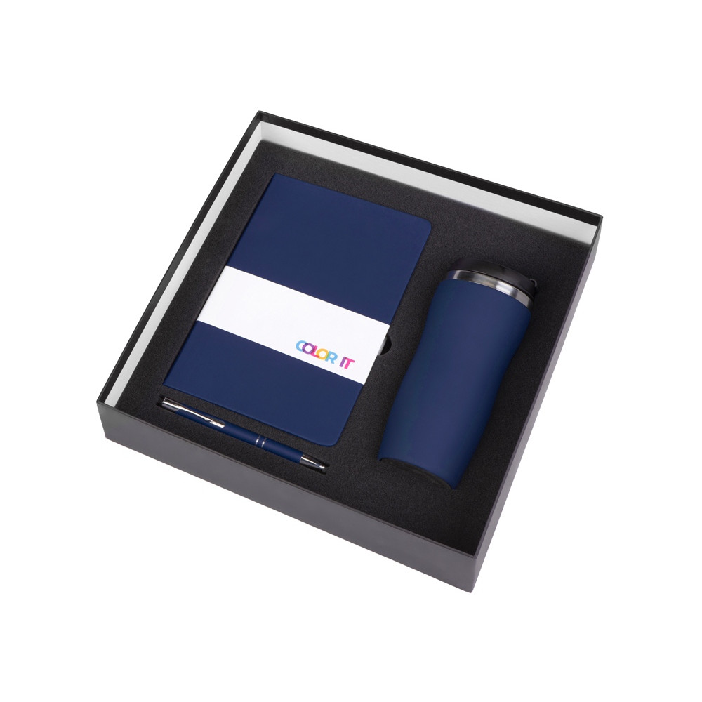 Подарочный набор с блокнотом С2, металлической ручкой и термокружкой, темно-синий