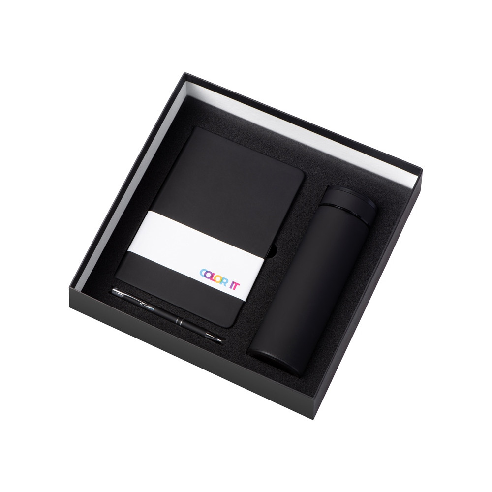 Подарочный набор с блокнотом С1, металлической ручкой и термосом, черный