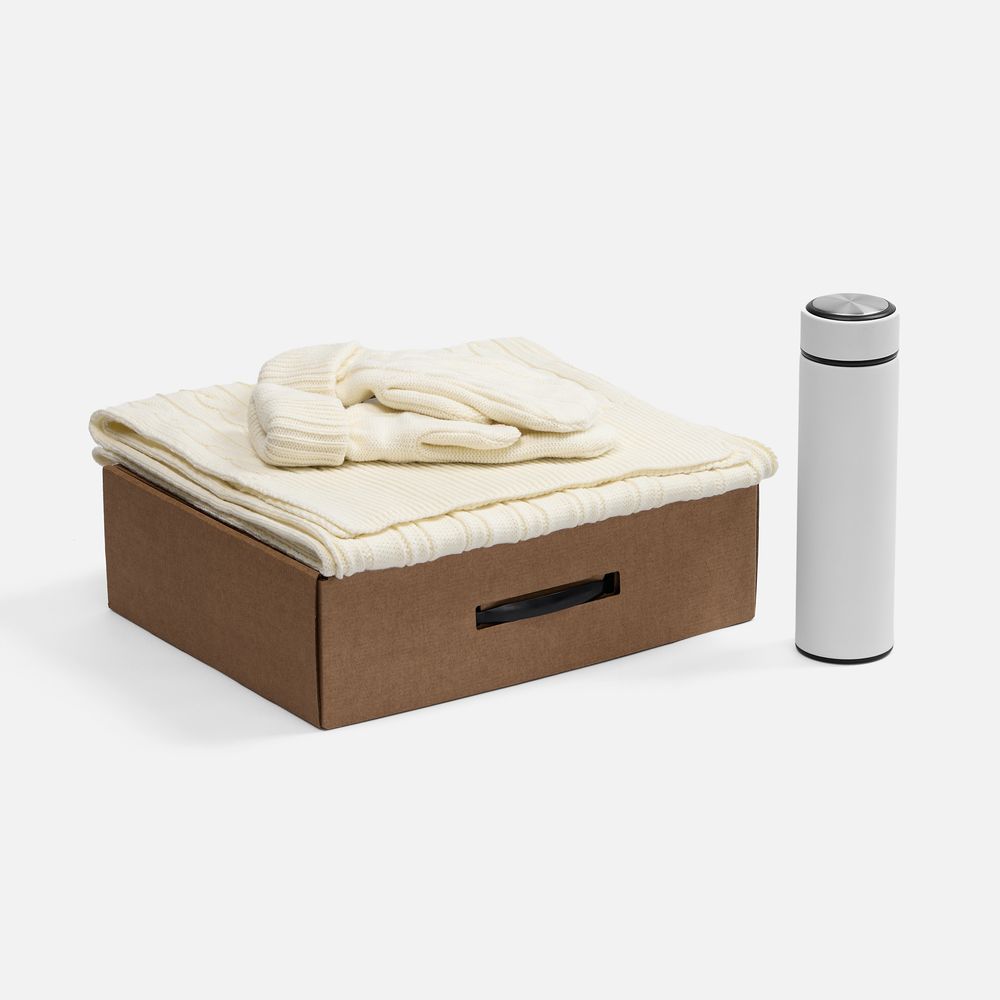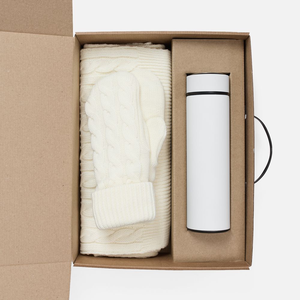 - шарф, варежки - акрил 100%; термос - нержавеющая сталь, 304; покрытие софт-тач; коробка - микрогофрокартон