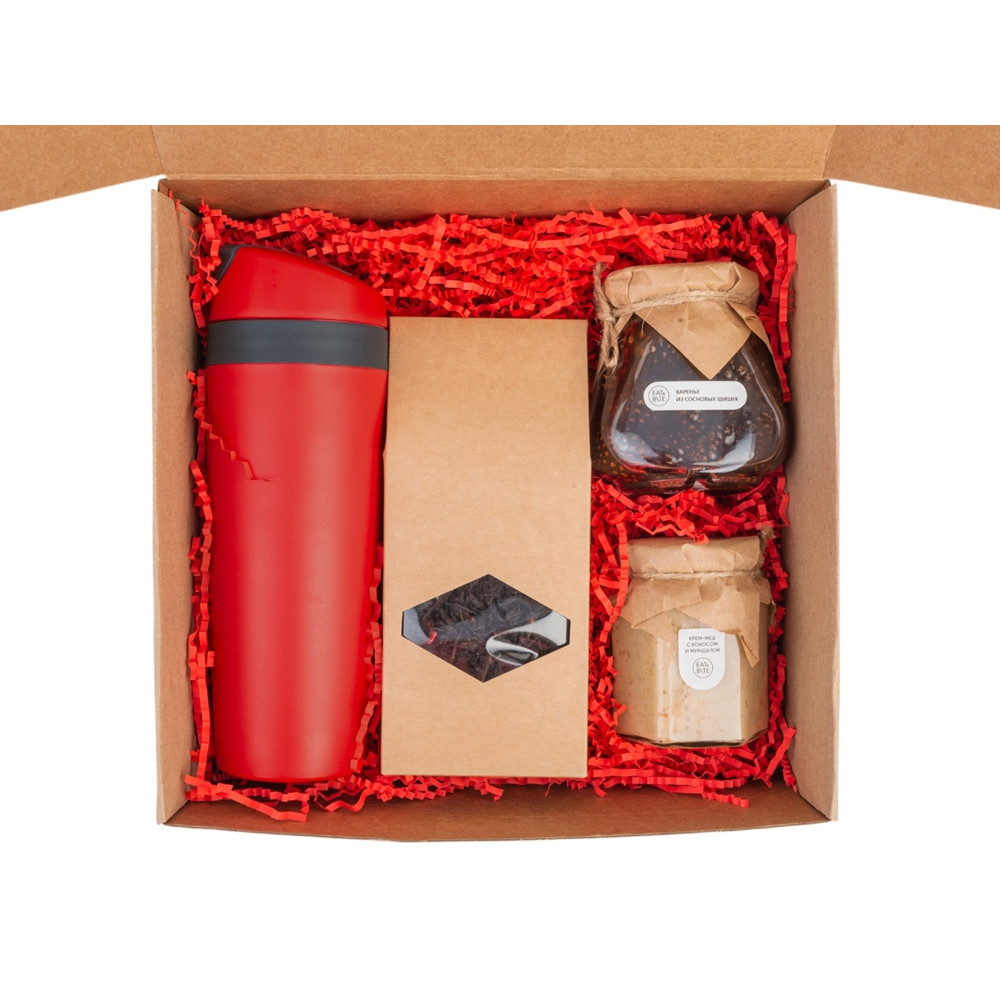 • Материал товара коробка - картон, банка - стекло, термокружка - полипропилен