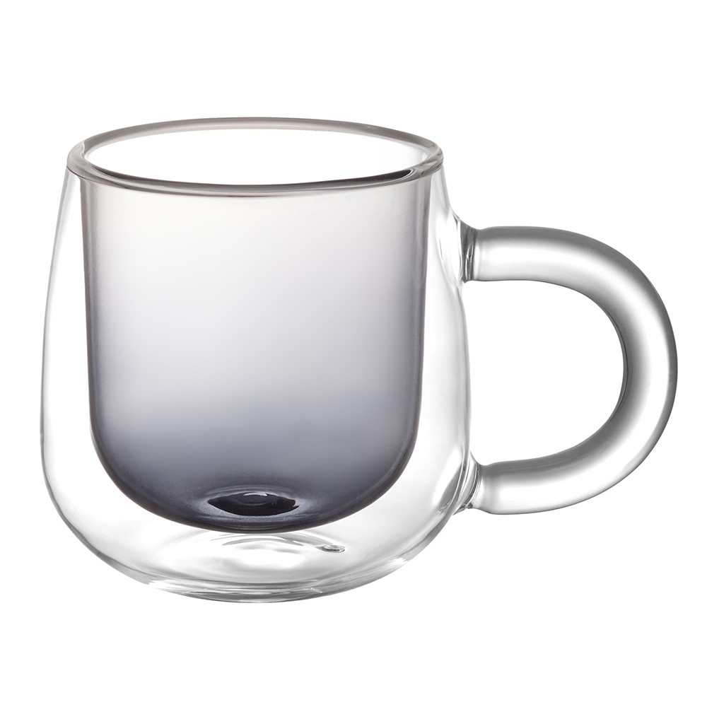 Стеклянная кружка Fog — стиль и функциональность - Объем: 370 мл — удобный размер для чая, кофе или любимого напитка. - Боросиликатное стекло: прочность, термостойкость, безопасность. - Широкая круглая ручка: эргономичный дизайн, приятно держать, выглядит трендово и стильно. - Плавный градиент: красивый переход цвета для эстетичного вида. - Двойные стенки: лучше сохраняет температуру напитка и защищает руки от перегрева. Современный дизайн и практичность в каждой детали. Не разрешается разогревать в микроволновой печи и мыть в посудомоечной машине.