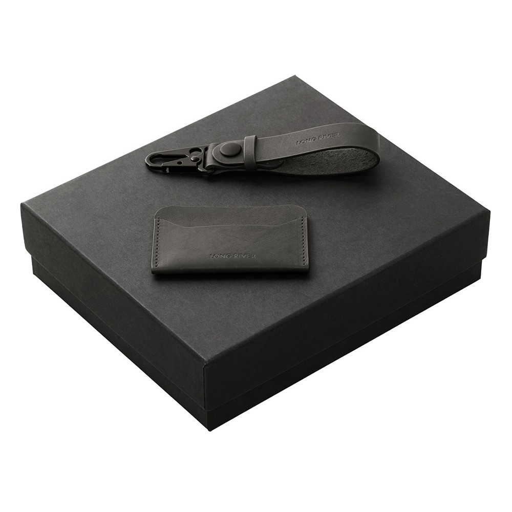 Подарочный набор Long River: картхолдер, ремешок для ключей, черная коробка
