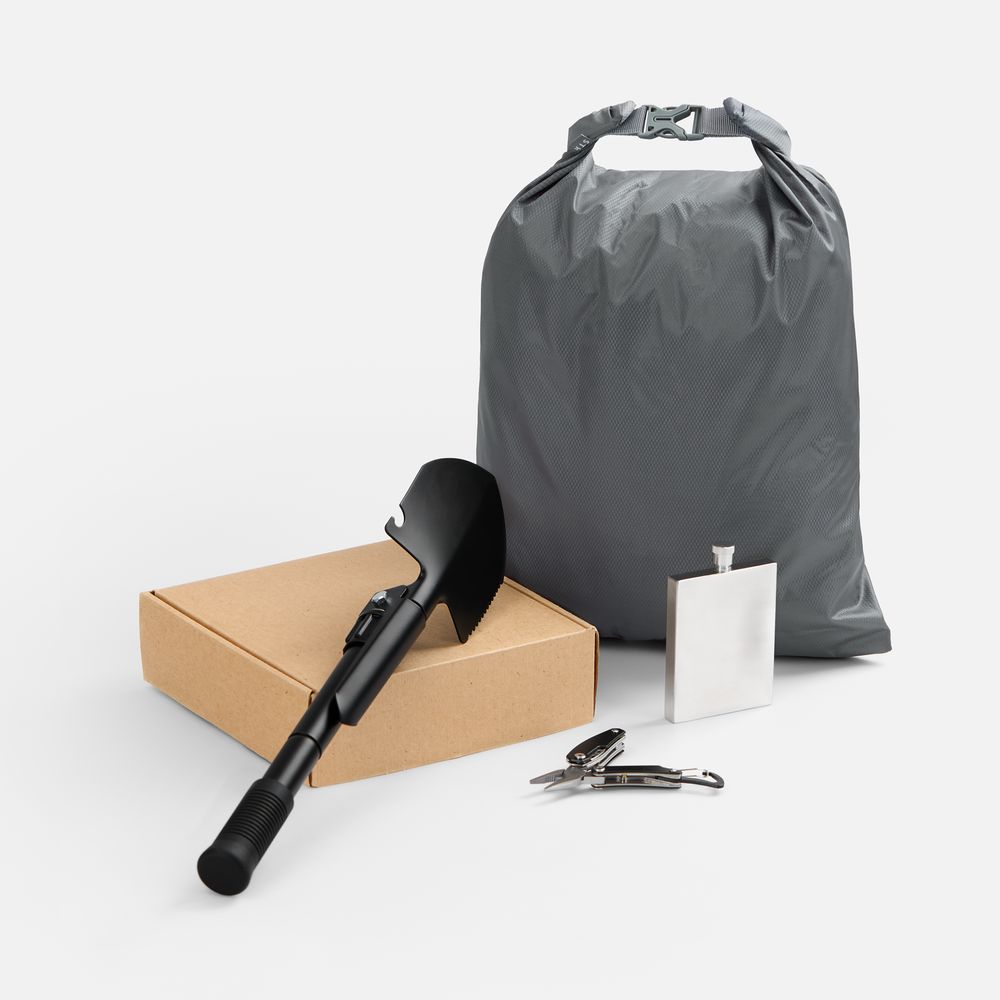 Набор Brutaliteam создан для тех, кто ценит свободу и не боится приключений. В комплект входят компактная многофункциональная лопата, складной мультитул, прочная фляжка и водонепроницаемый рюкзак, который надежно защитит вещи в любых условиях.