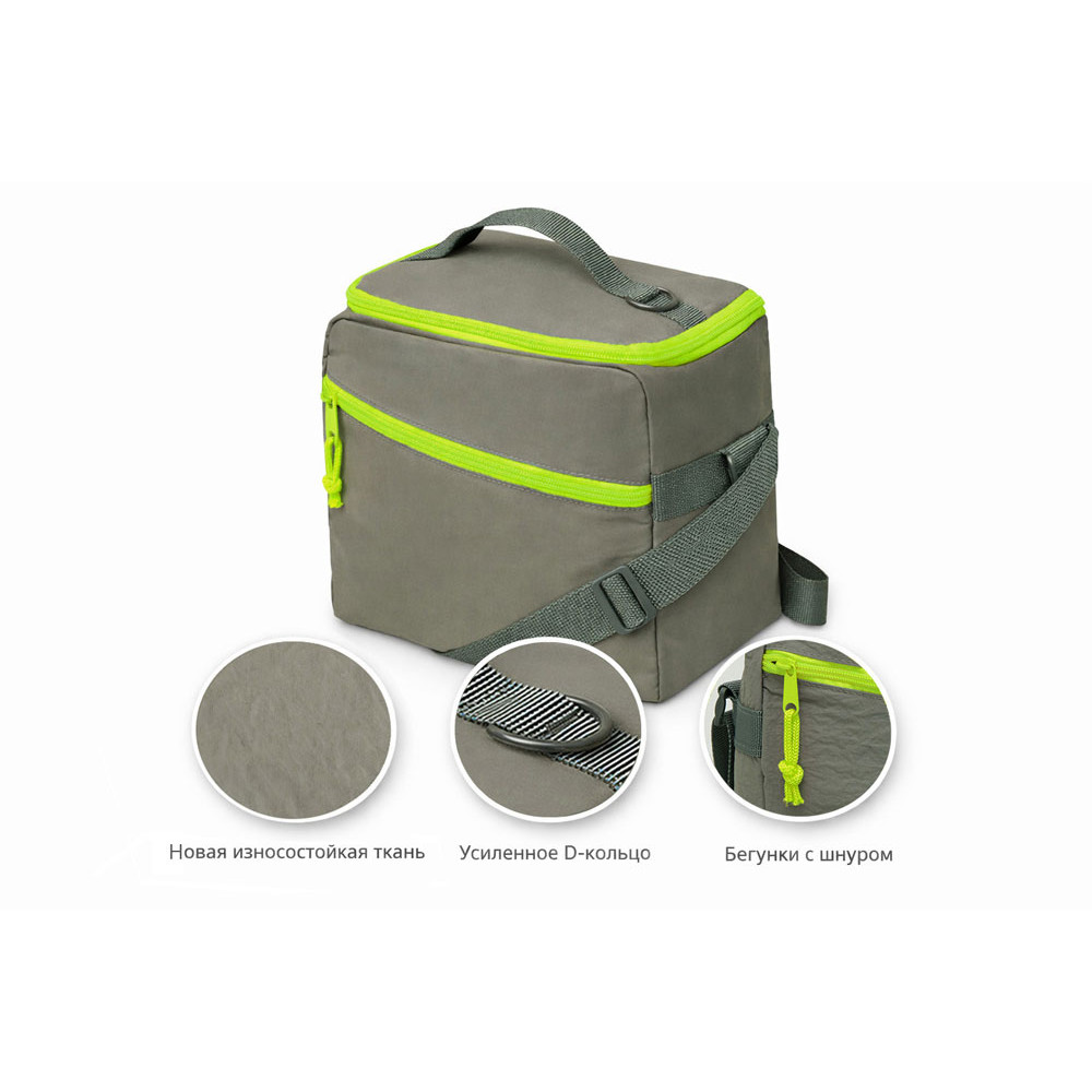 Изотермическая сумка-холодильник Neo Classic c контрастной молнией, серый/зеленое яблоко