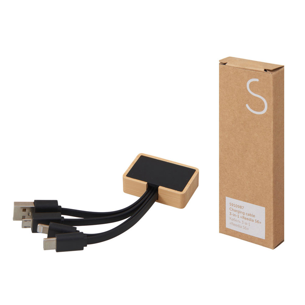 Кабель 3-в-1 с подсветкой лого Reedia S6, бамбук, черный