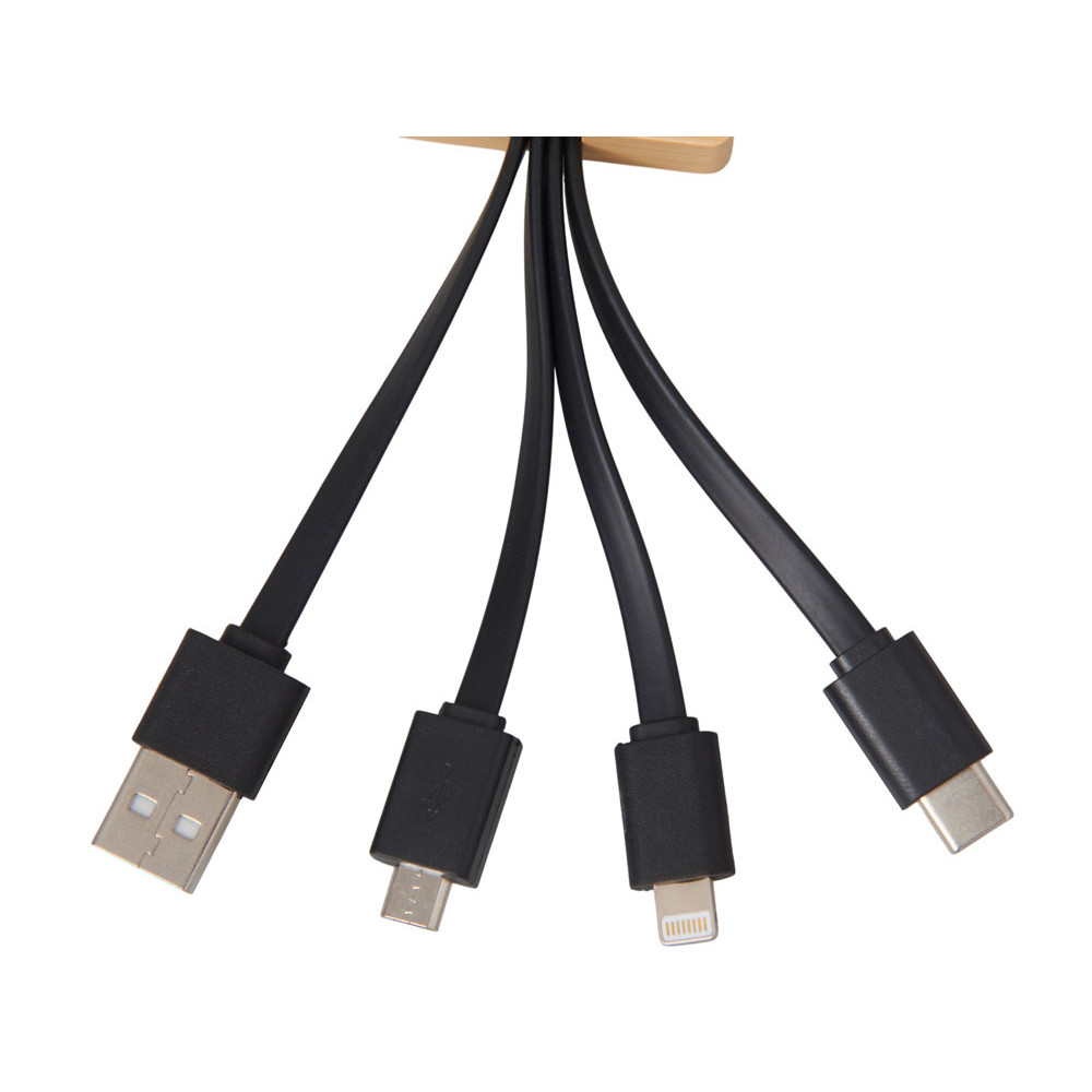 Универсальный зарядный кабель 3-в-1 — элегантное решение для владельцев любых гаджетов. С тремя разъемами (USB-C, micro USB, Lightning), он заменяет три кабеля в одном компактном корпусе, выполненном из натурального бамбука и переработанного ABS-пластика. Это не просто практичный аксессуар — это экосознательный стиль, который подчеркнёт ваш вкус и заботу об окружающей среде. Встроенная белая подсветка с возможностью нанесения логотипа добавляет изюминку: ваш бренд или инициалы мягко светятся при подключении, создавая эффект премиальности и индивидуальности. Идеален для повседневного использования, путешествий и в качестве запоминающегося корпоративного подарка.