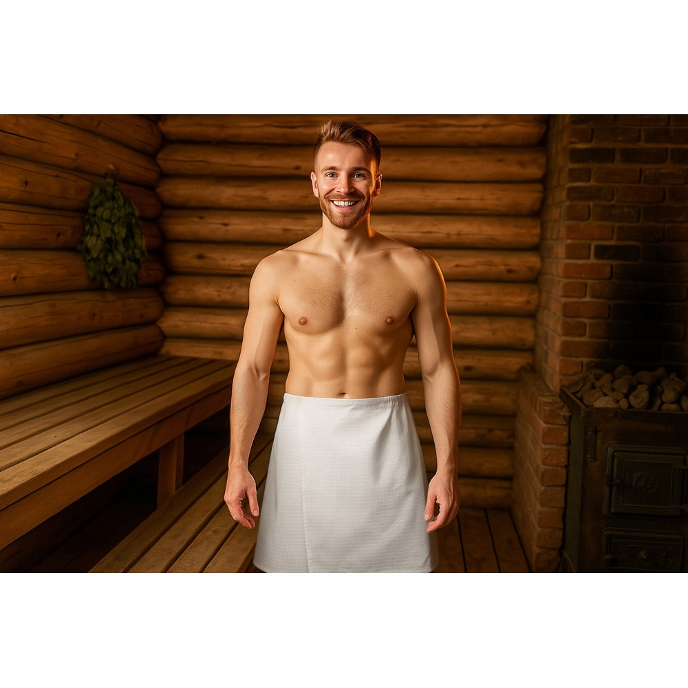 Отличный выбор для любителей парных — вафельный килт, идеально подходящий для бани, сауны или пляжа.