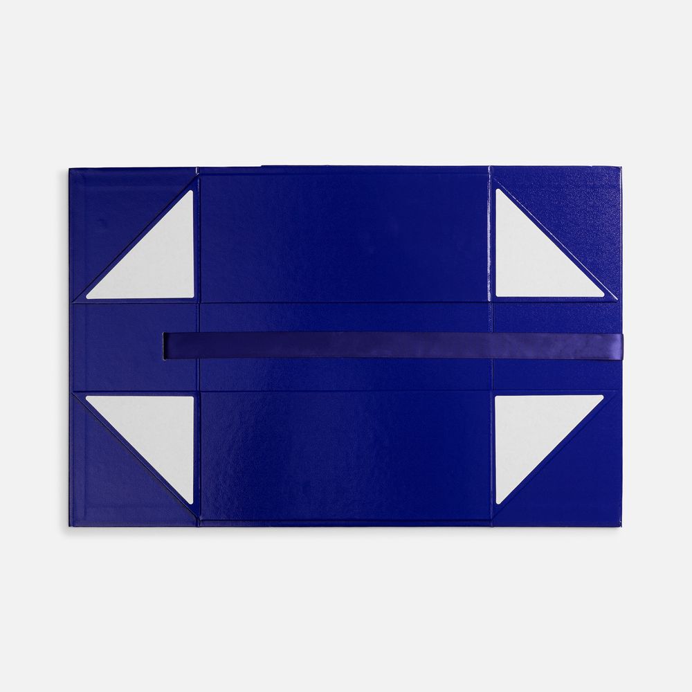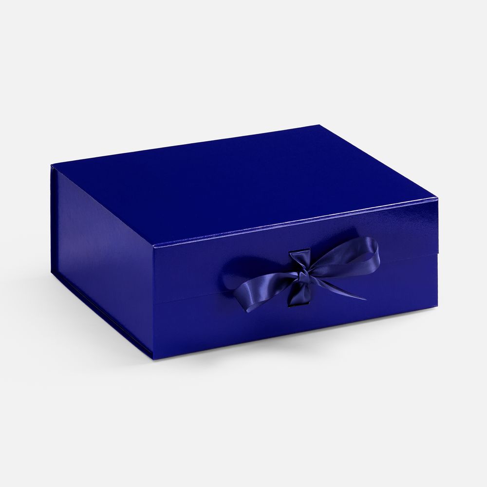 Коробка из переплетного картона с лайнером, ламинированым полуглянцевой текстурной пленкой устойчив к царапинам. Крышка на двух магнитах дополнительно фиксируется репсовой лентой.Толщина картона 2 мм.