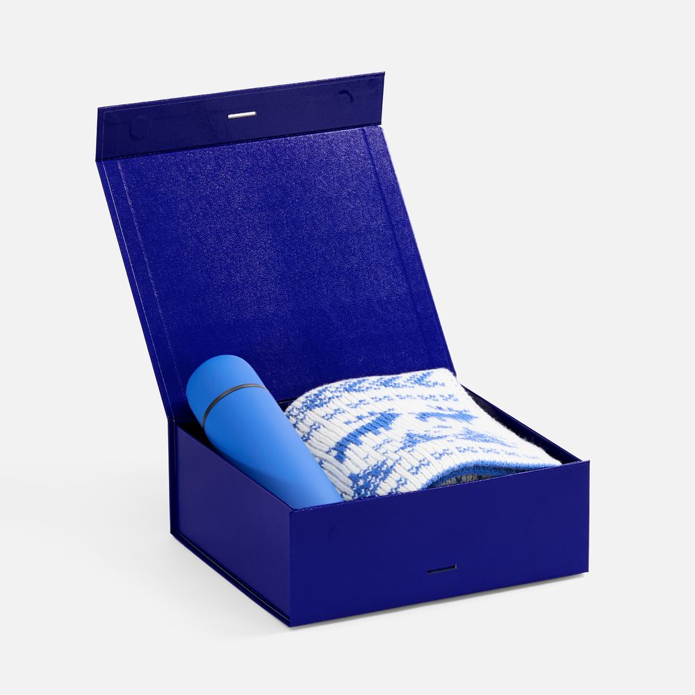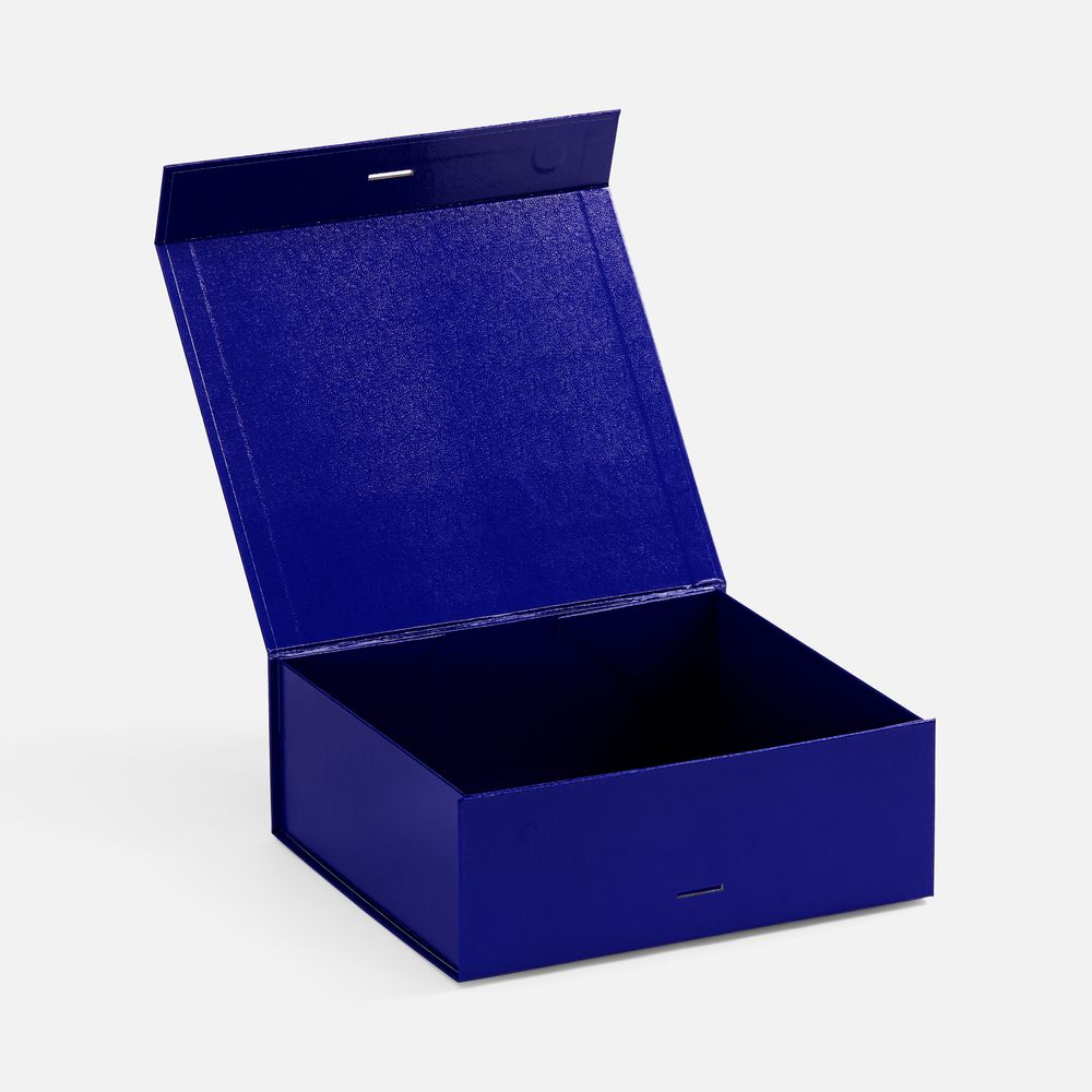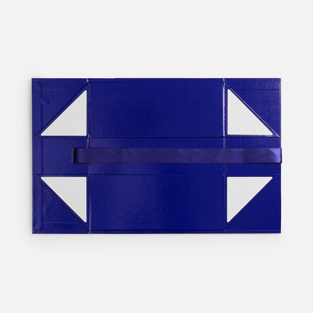 Коробка из переплетного картона с лайнером, ламинированым полуглянцевой текстурной пленкой устойчив к царапинам. Крышка на двух магнитах дополнительно фиксируется репсовой лентой.Толщина картона 2 мм.