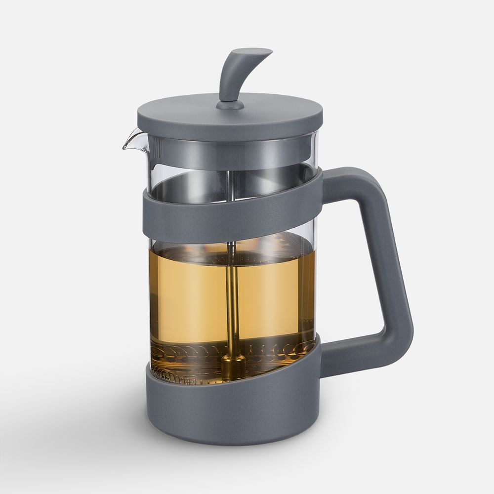 Колба из боросиликатного стекла, способного выдерживать температуры до +110°С. Пластиковые детали изготовлены из прочного и нетоксичного материала, а пресс-фильтр сделан из нержавеющей стали. Носик с системой антикапля предотвращает проливания, позволяя аккуратно наливать горячий напиток. Прозрачные стенки позволяют легко определить крепость заваренного напитка. Модель также оснащена ненагревающейся ручкой, что делает использование удобным и безопасным.