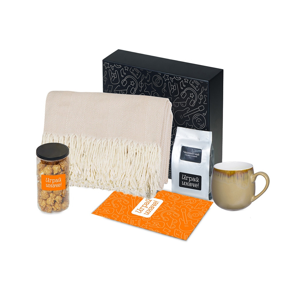 - Материал товара плед - 100% хлопок, кружка - костяной фарфор с покрытием soft-touch,чай - пластик, попкорн - пластик, металл, мешок - нетканый материал (спандонд), коробка - картон