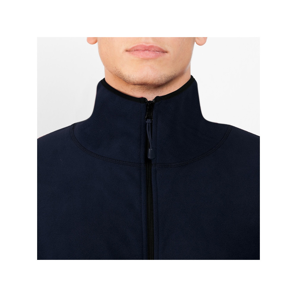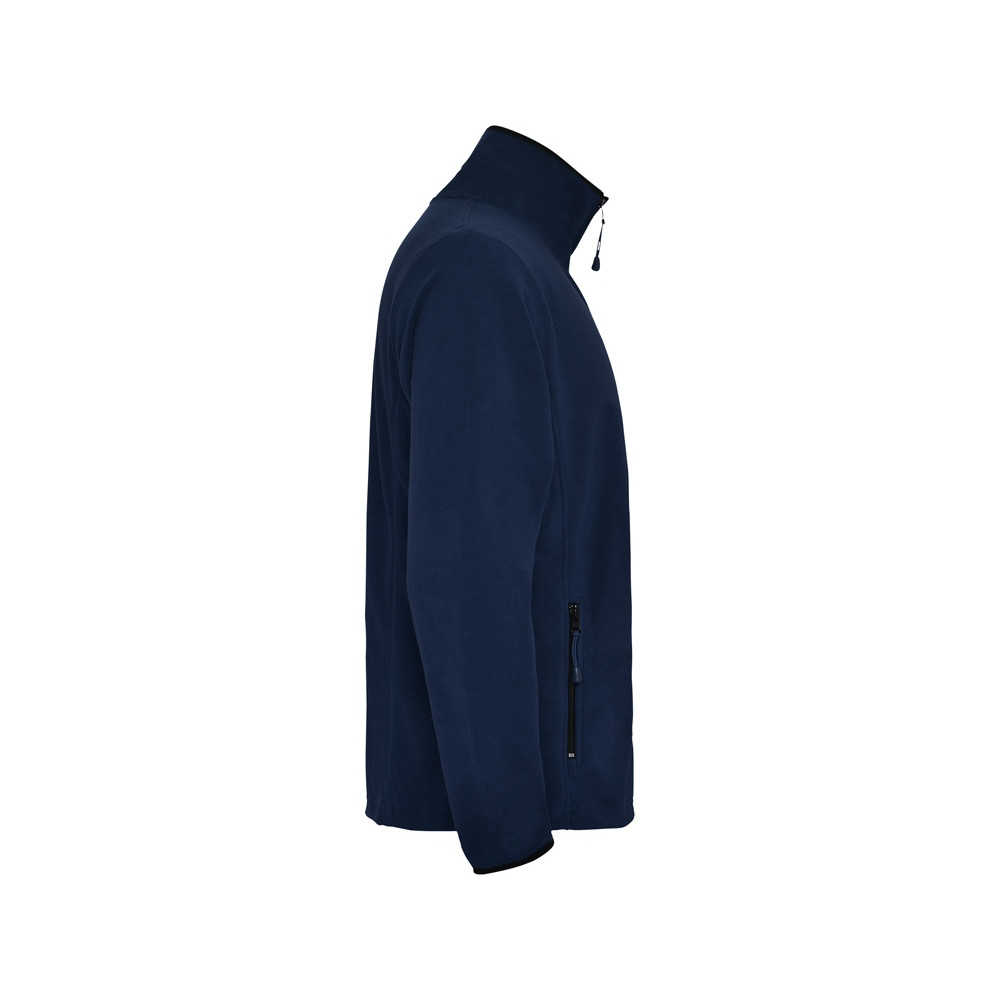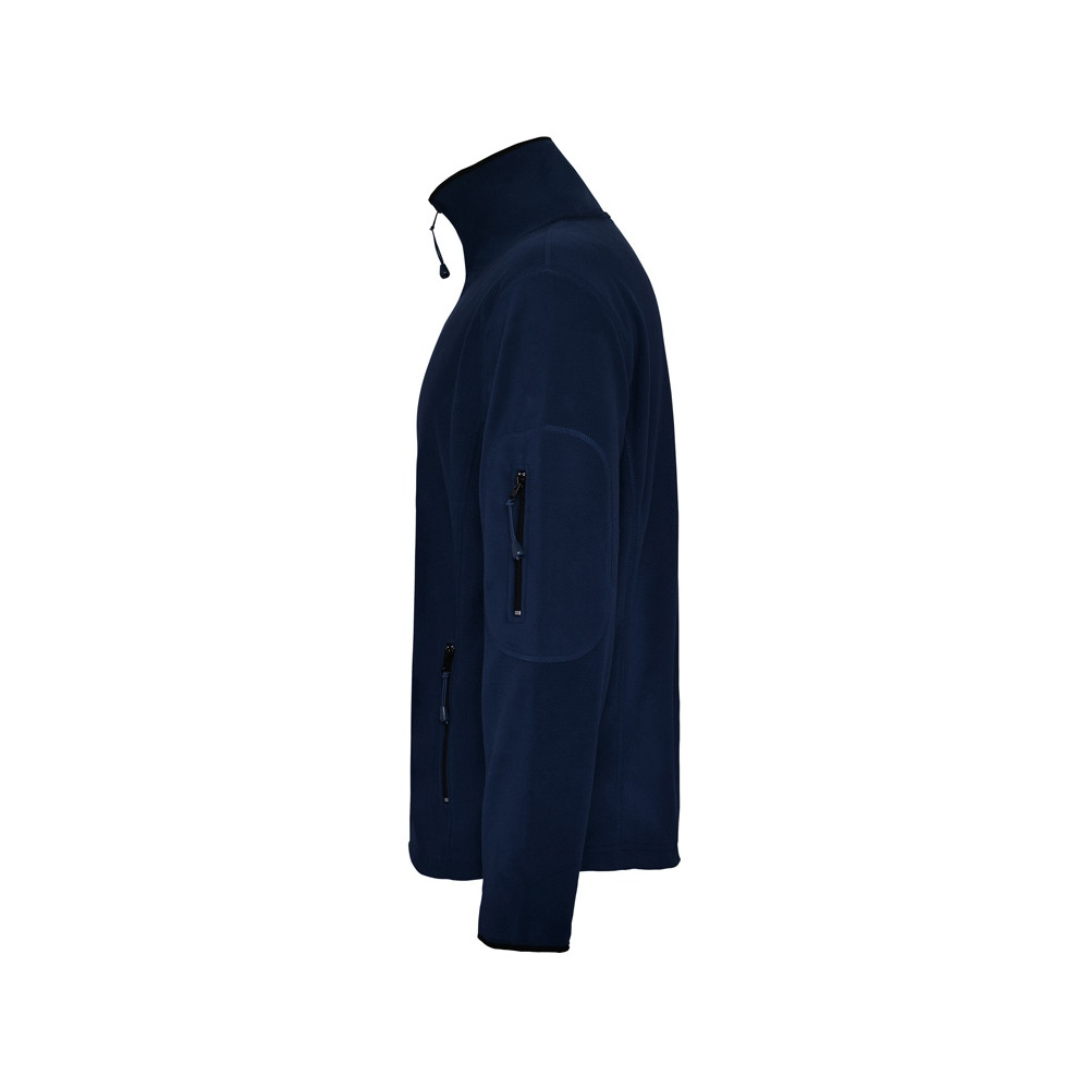 Куртка из микрофлиса с высоким воротом. Контрастная центральная молния, боковые карманы на молнии, декоративная молния на левом рукаве, отделка резинкой по краю рукавов. Налокотники из основного материала.