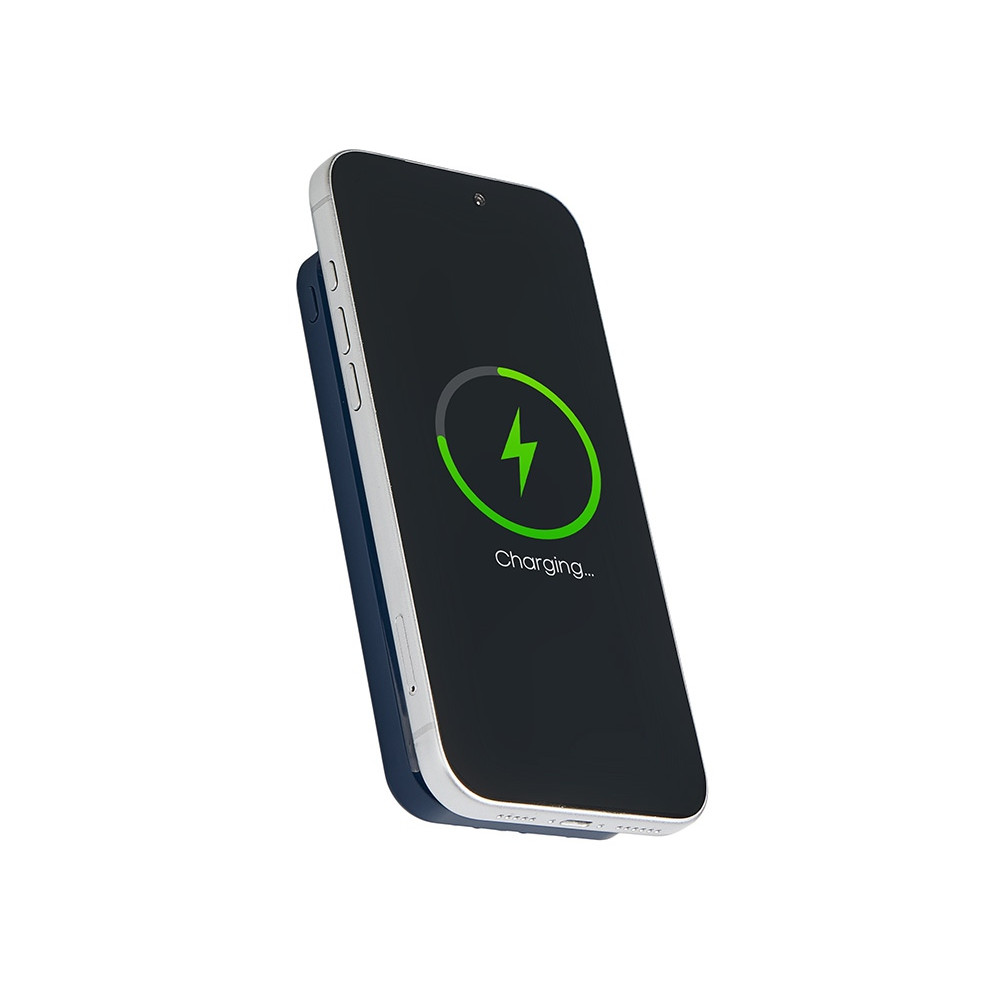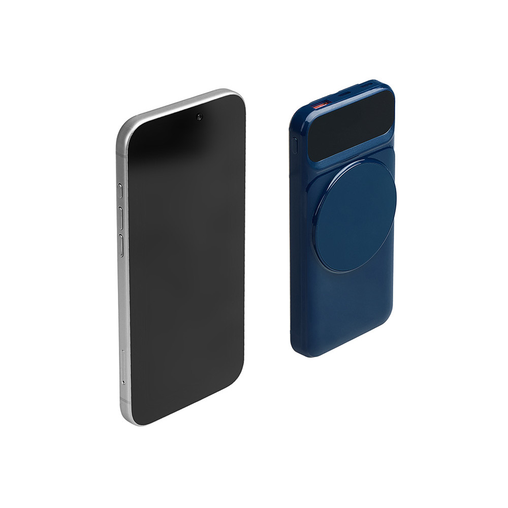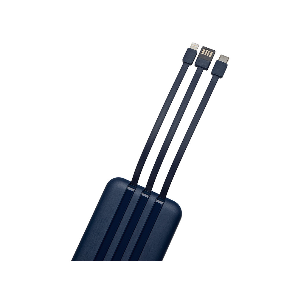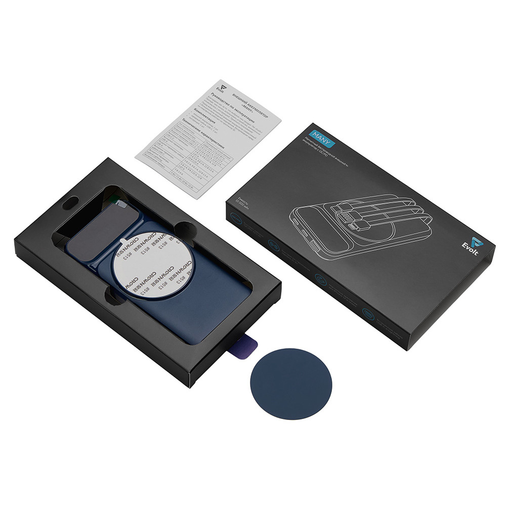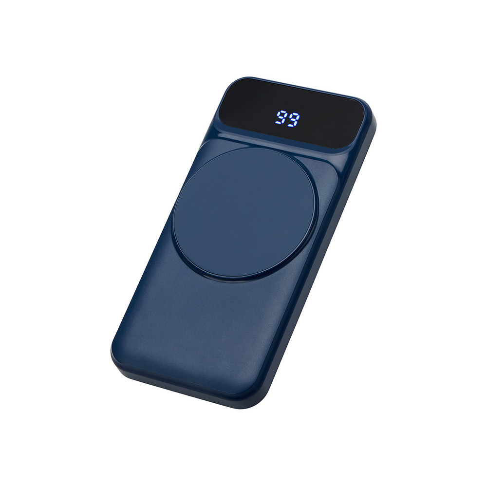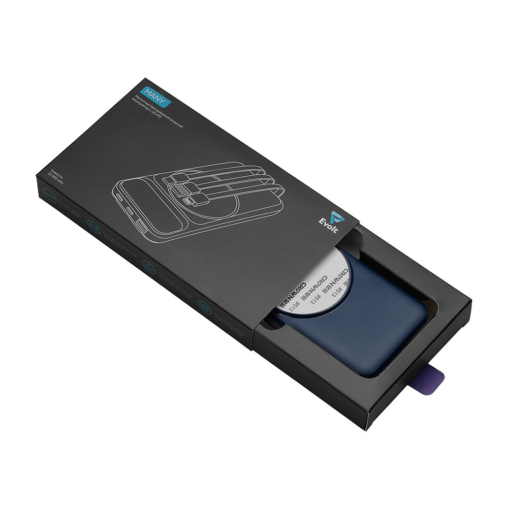 Магнитный беспроводной внешний аккумулятор со встроенными кабелями Мэни,быстаря зарядка, 10000 мАч, тёмно-синий