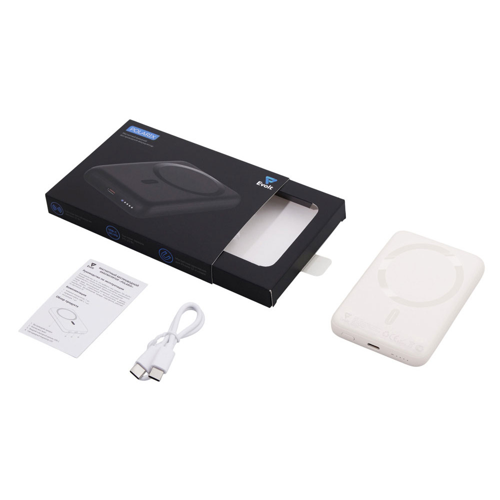 Магнитный внешний беспроводной аккумулятор Polarix, QC/PD, 10000 мАч, слоновая кость