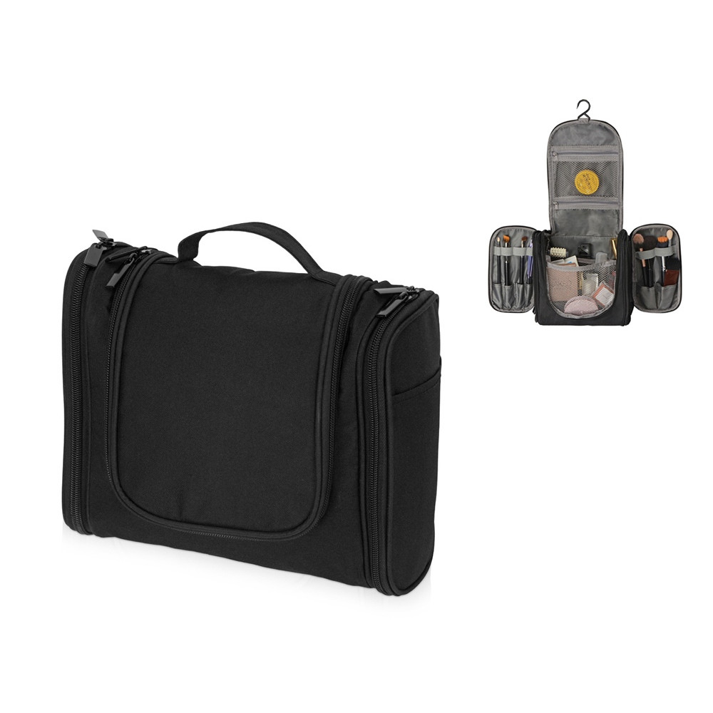 Несессер для путешествий. Эргономичный и вместительный, имеет внутренние и внешние карманы и большое отделение внутри. Оснащён ручкой для переноски и крючком для подвешивания. Нейтральный лаконичный дизайн позволяет преподнести несессер как мужчине, так и женщине;