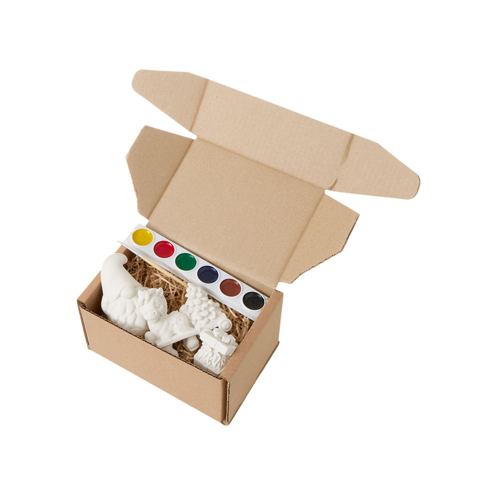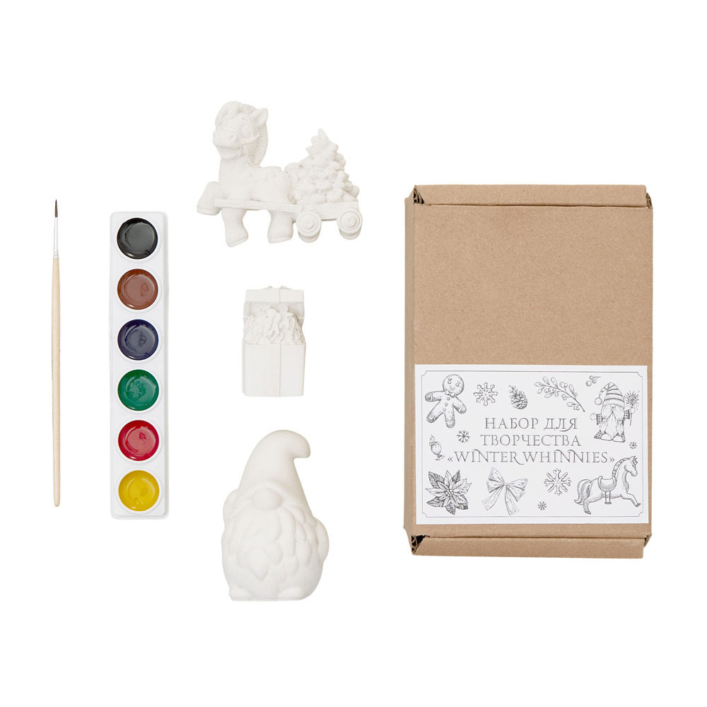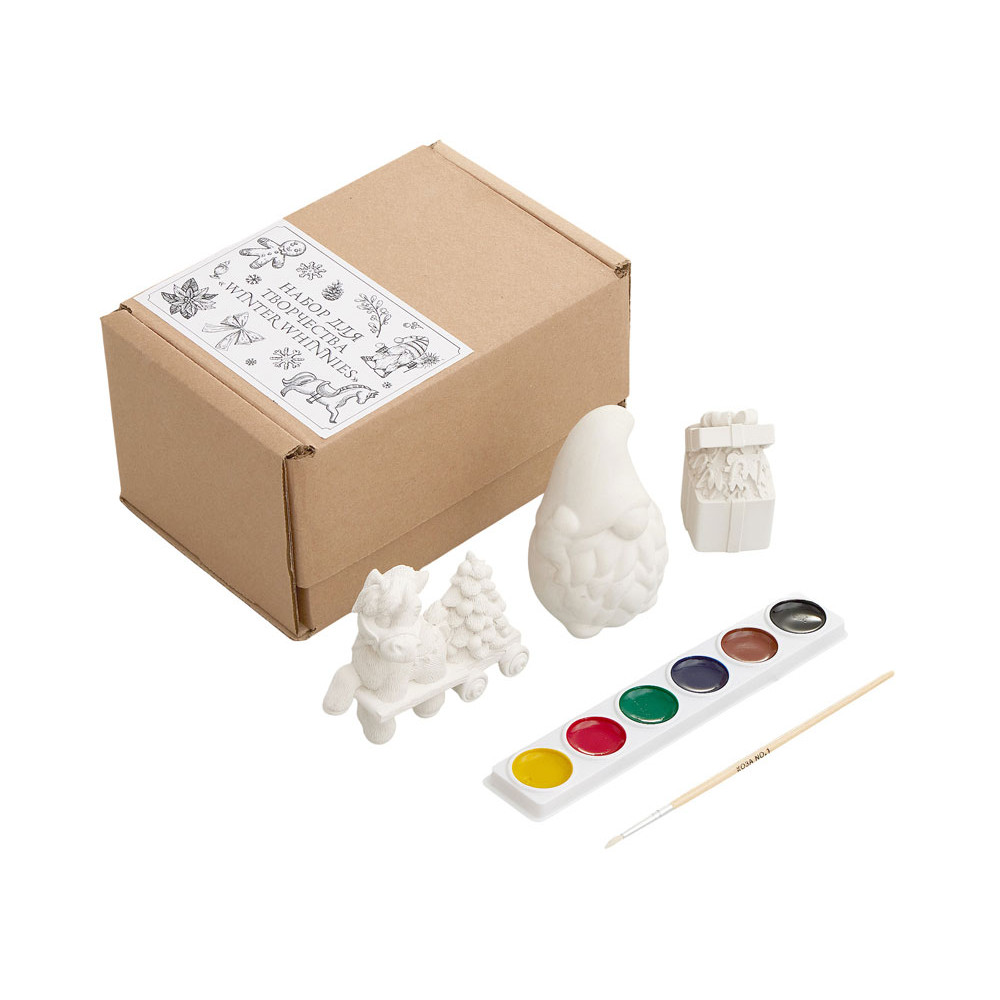 • Комплектность 3 гипсовых фигурки, акварельные краски, 1 кисточка