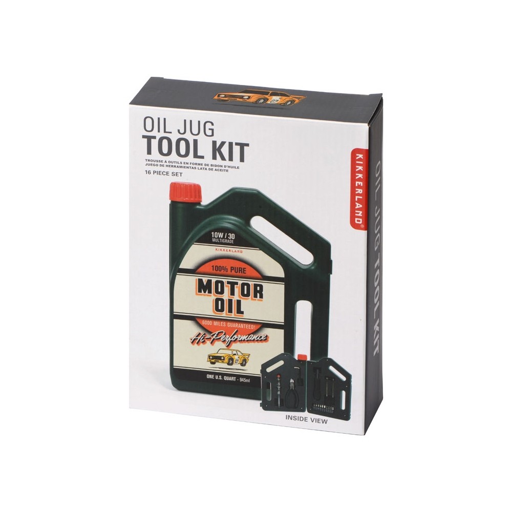 Набор инструментов в футляре в виде канистры включает в себя 1 тестер напряжения, 1 пару плоскогубцев, 1 шестигранный ключ, 1 рукоятку, к которой можно крепить отвертки, 2 прецизионные отвертки, 1 крестообразную головку, 1 плоскую головку, 10 бит.