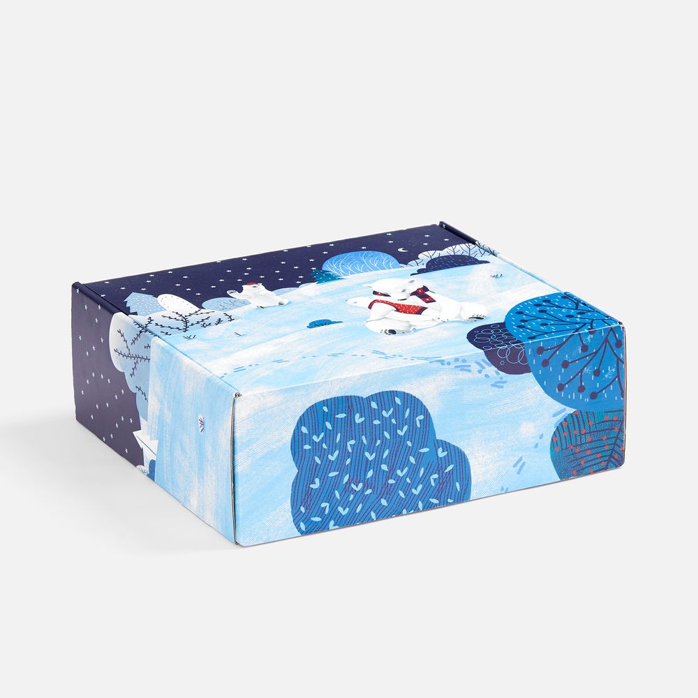 Набор «Праздничный полюс» приглашает окунуться в мир настоящей зимней эстетики и волшебной безмятежности! Это новогодний ансамбль в едином нарядном стиле: мягкий флисовый плед, кружка с тематическим принтом и изящный елочный шарик. Немного сказочные изображения с милыми белыми мишками на подарочной коробке и кружке задают тон всему набору, вызывая радость и улыбку.