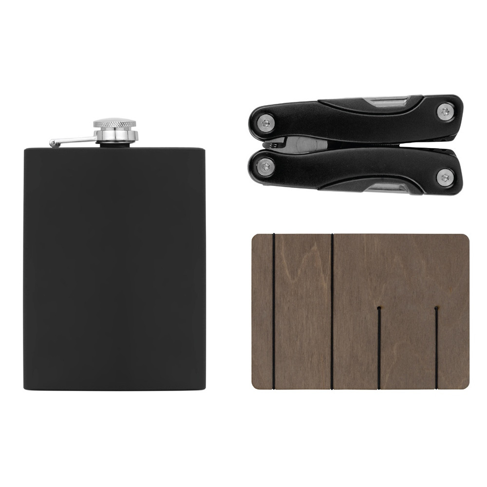 Набор с мультитулом и фляжкой Путешественник 2.0., черный