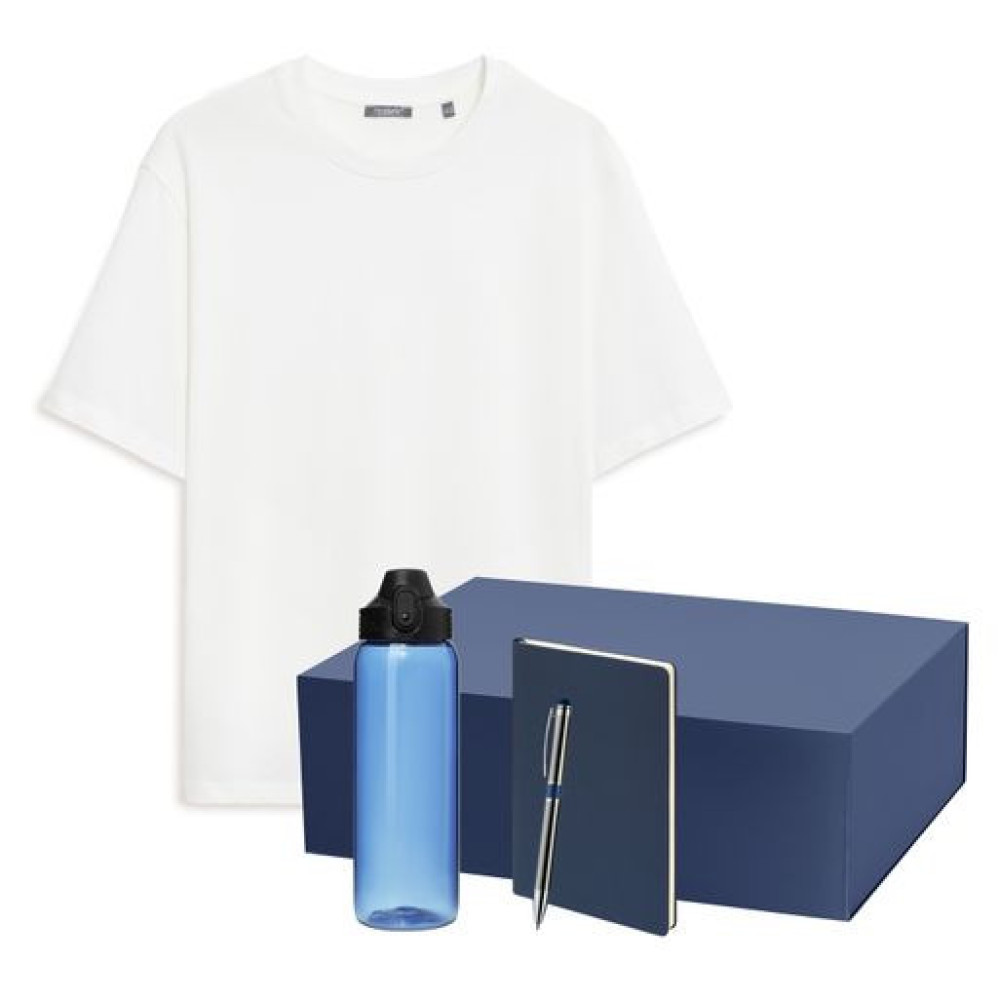 Набор с одеждой Раст Нео (Rust Neo) (футболка, бутылка, ежедневник, ручка), белый/синий, M/L