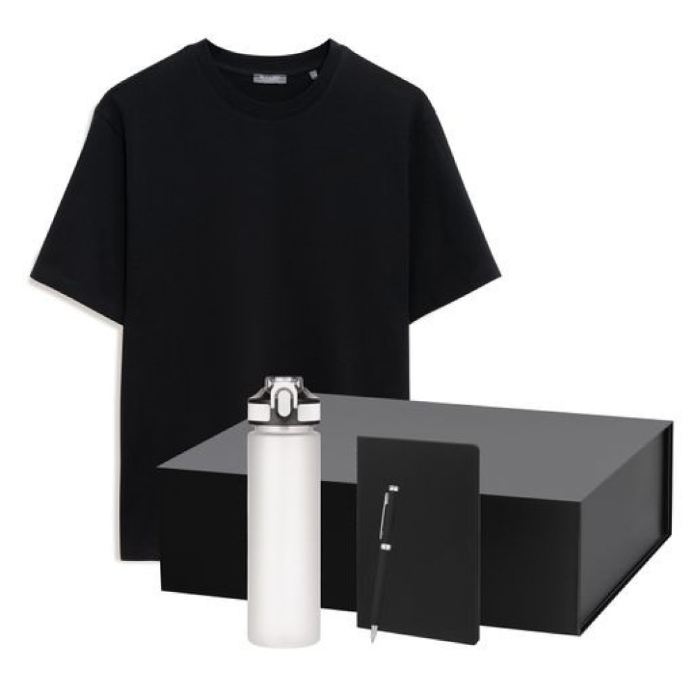 Набор с одеждой Раст (Rust) (футболка, бутылка, ежедневник, ручка), черный, M
