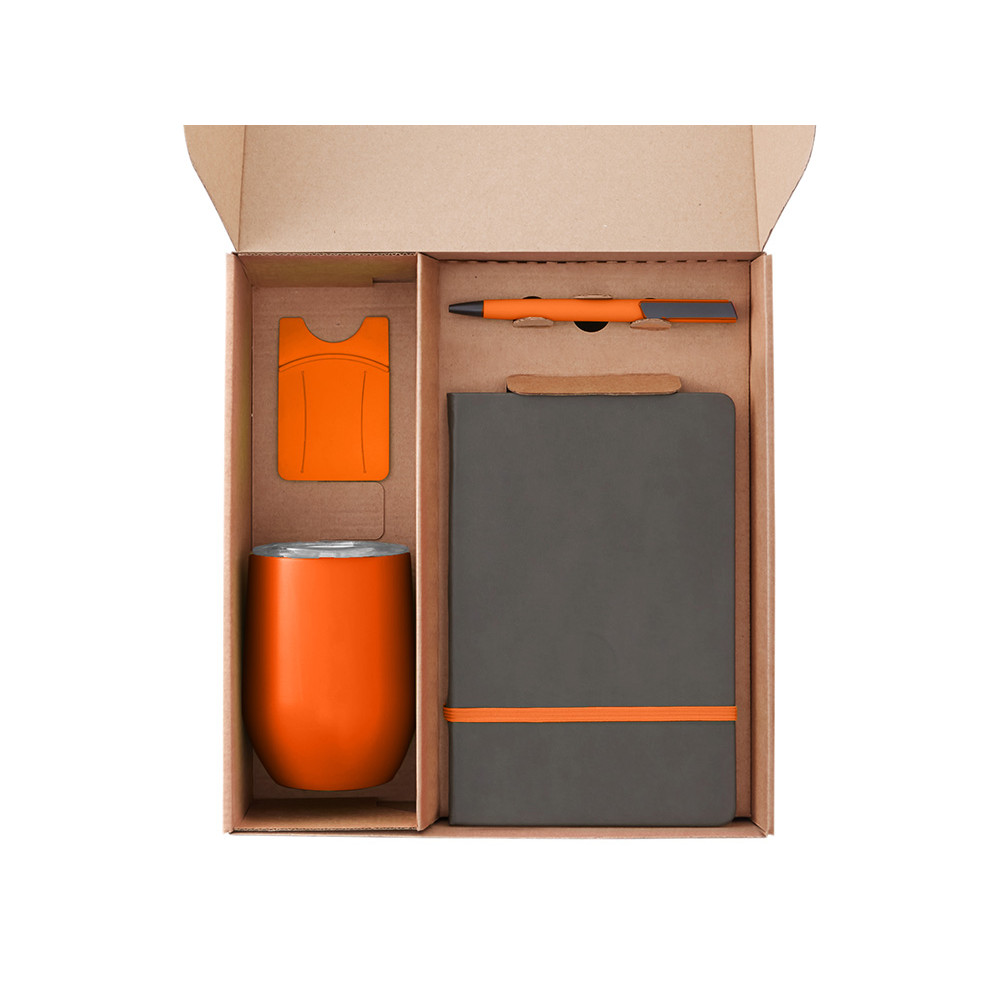 Набор с термокружкой, блокнотом, ручкой и ланчбоксом Refreshment, оранжевый