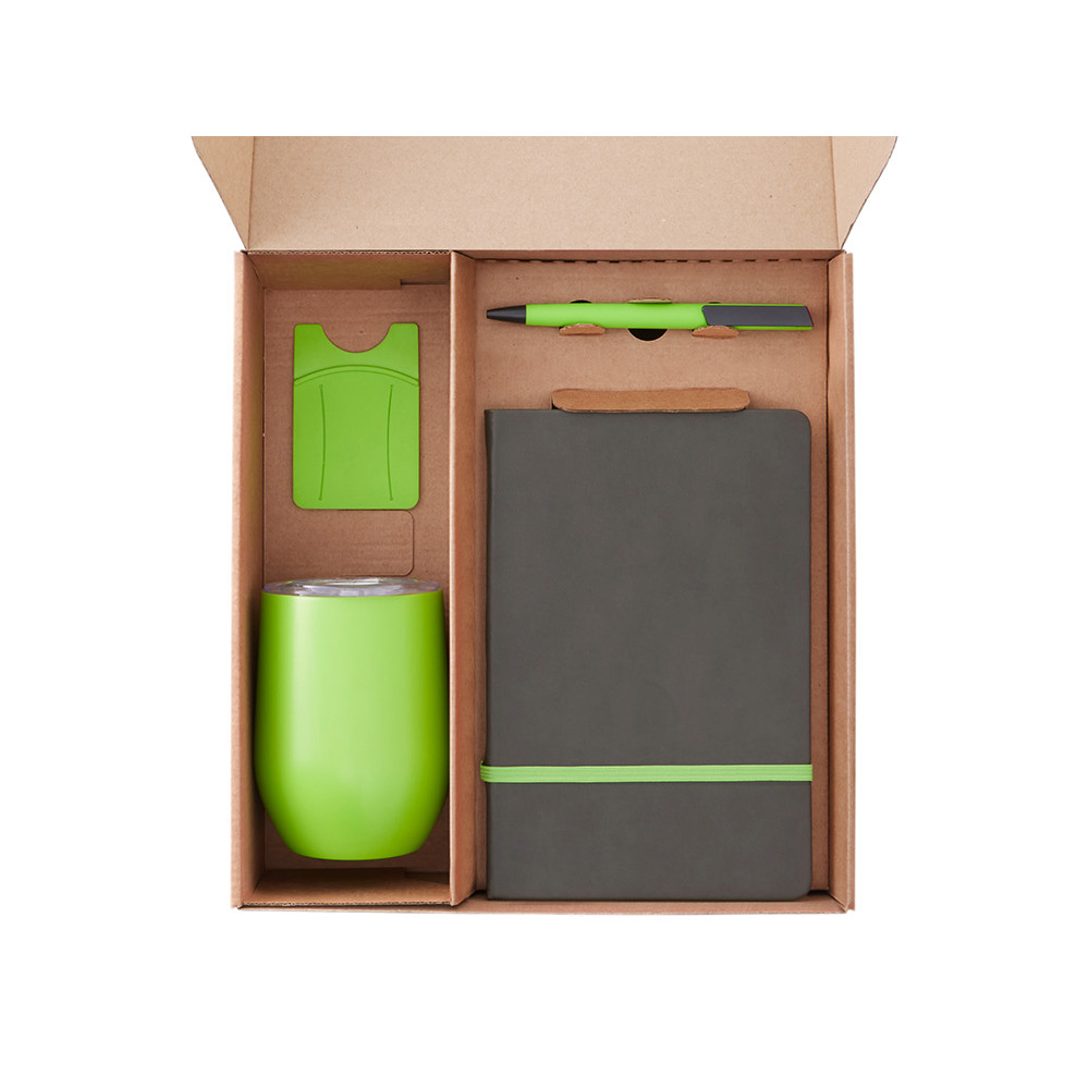 Набор с термокружкой, блокнотом, ручкой и ланчбоксом Refreshment, зеленое яблоко