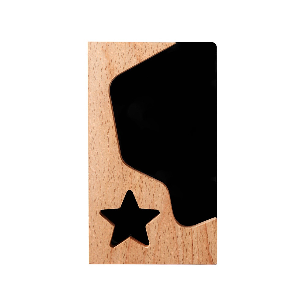 Красивая и современная награда для главных звезд любой компании. Черный акрил добавляет контраста рамке из бука, логотип или наградную надпись можно выгравировать на деревянной части или сделать уникальный дизайн, благодаря полной запечатке акрила методом УФ-печати.