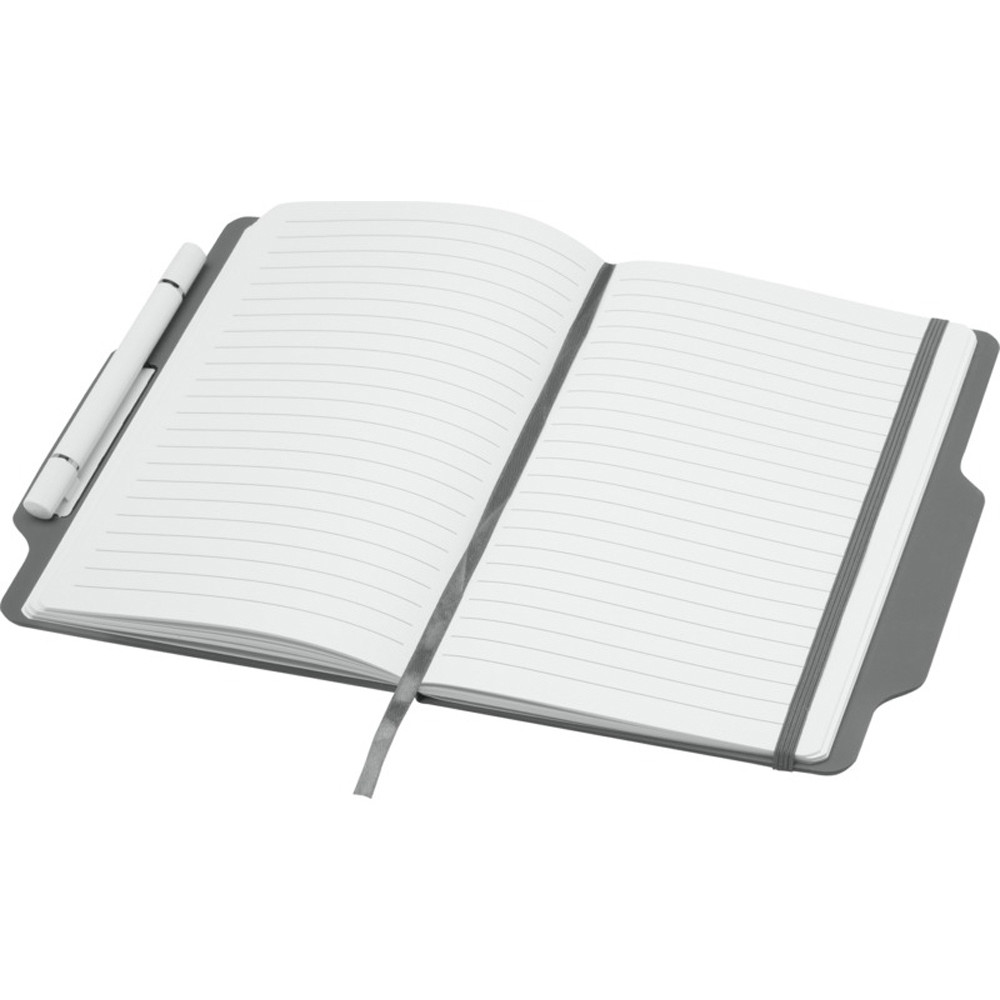 Блокнот Nexus формата A5 в твердой обложке с ручкой/карандашом, с 80 кремовыми линованными листами бумаги плотностью 70 г/м², с закругленными углами, эластичной застежкой и ленточным маркером. Ручка двухсторонняя: одна сторона — ручка с черными чернилами, а другая — карандаш. Длина непрерывной линии ручки: 1000 метров. Размер пера: 1,00 ММ. FSC certified paper, PU Plastic.