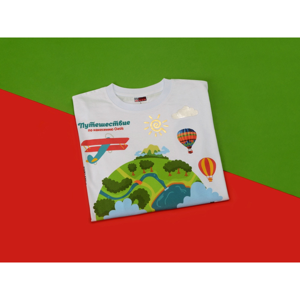 Зачем нужно огромное количество индивидуальных образцов, если можно посмотреть все виды нанесения на одной футболке? Благодаря нашему новому сету все виды нанесения на текстиль теперь у вас под рукой. Образец футболки демонстрирует 9 видов нанесения: от самых популярных, вышивки и текстильного принтера, до трафаретной печати с золотой фольгой и DTF.