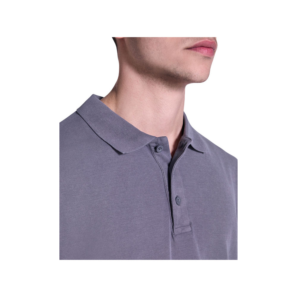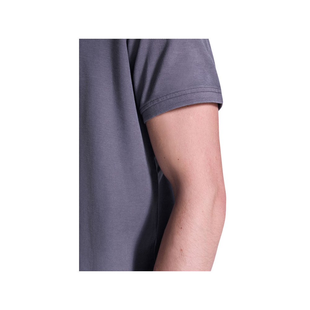 Унисекс поло с коротким рукавом, 100% хлопок, аксидная стирка. Рибовый воротник и манжеты по рукавам, боковые разрезы. Отстрочка в тон по планке