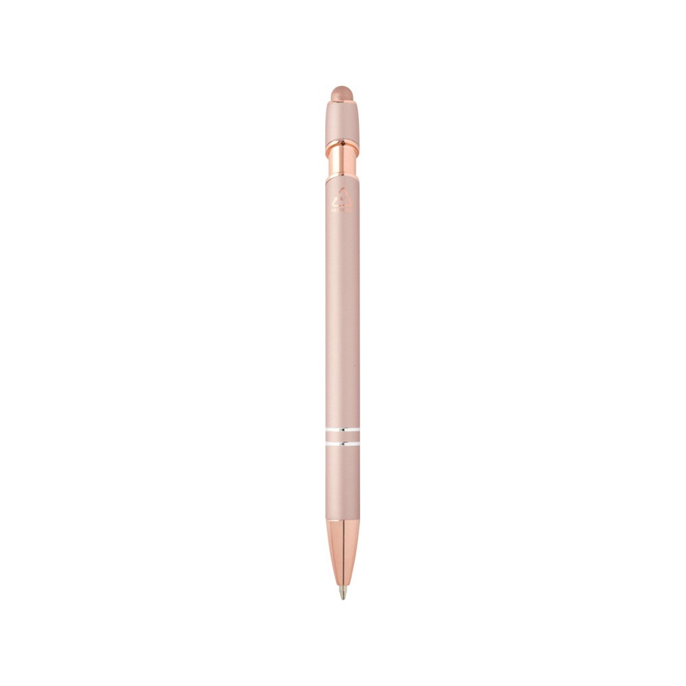 Шариковая ручка Nanna с покрытием из розового золота имеет корпус из переработанного алюминия и сенсорный стилус из силикона. Переработанный алюминий уменьшает количество отходов на свалках и помогает сохранять природные ресурсы для сокращения выбросов парниковых газов. Цвет чернил: синий. Длина непрерывной линии: 800 метров. Размер пера: 1,0 мм. Recycled Aluminium.