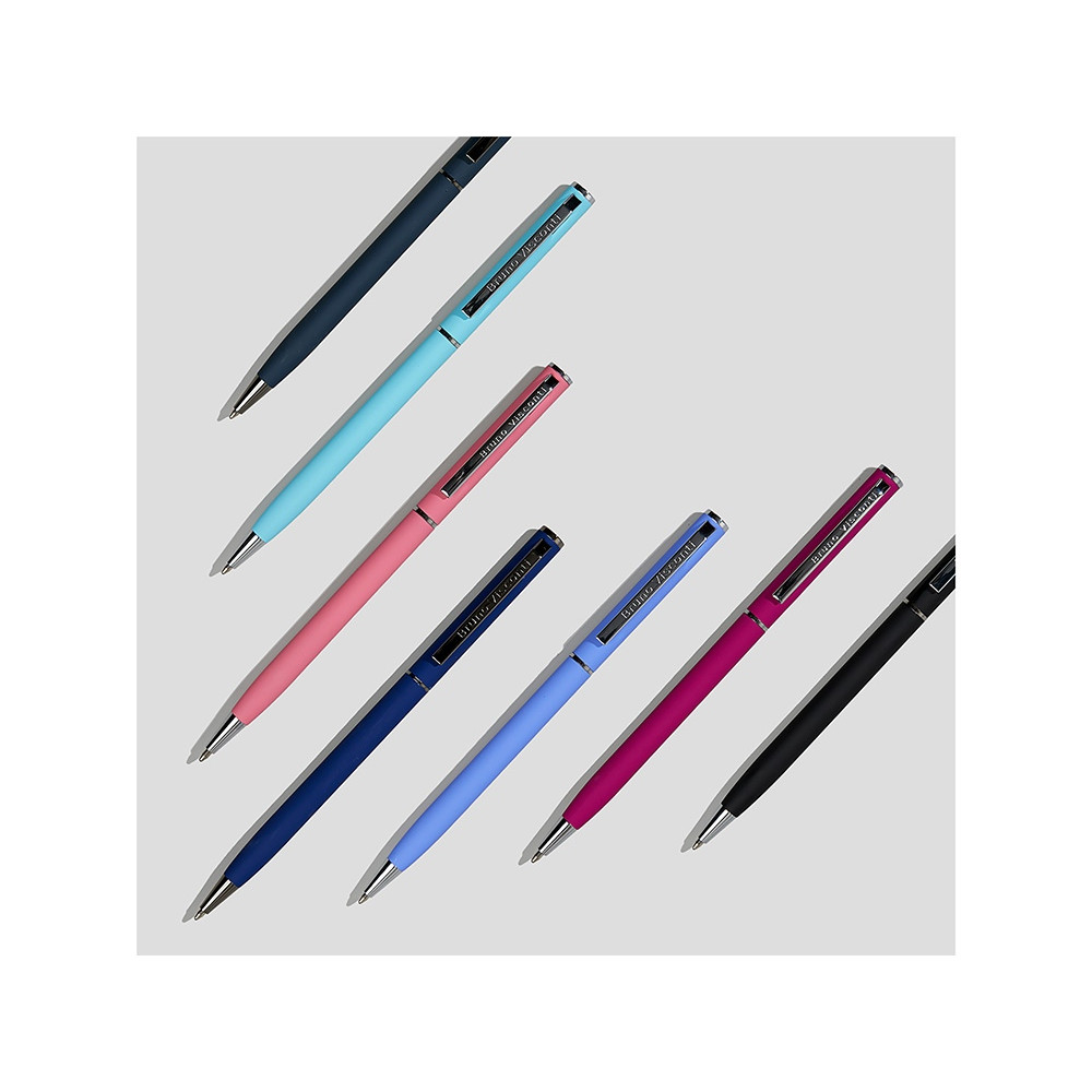Автоматическая металлическая ручка Bruno Visconti серии Palermo однотонного цвета порадует любителей всего изящного и утонченного. Покрытие корпуса Soft Touch гарантирует дополнительный комфорт в работе с ней. Стержень легко выдвигается благодаря поворотному механизму. Синие пигментные чернила Dokumental (Германия) и пишущий узел Premec (Швейцария) обеспечивают качественное и мягкое письмо.