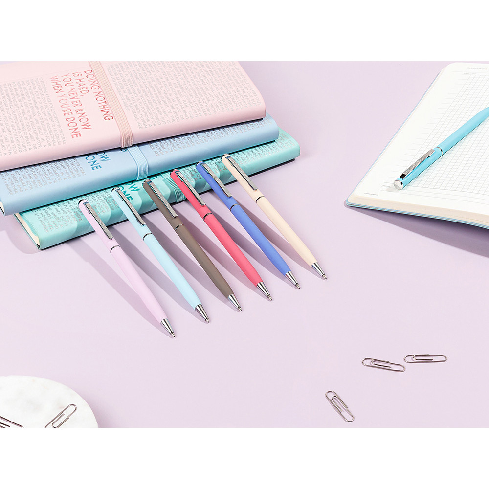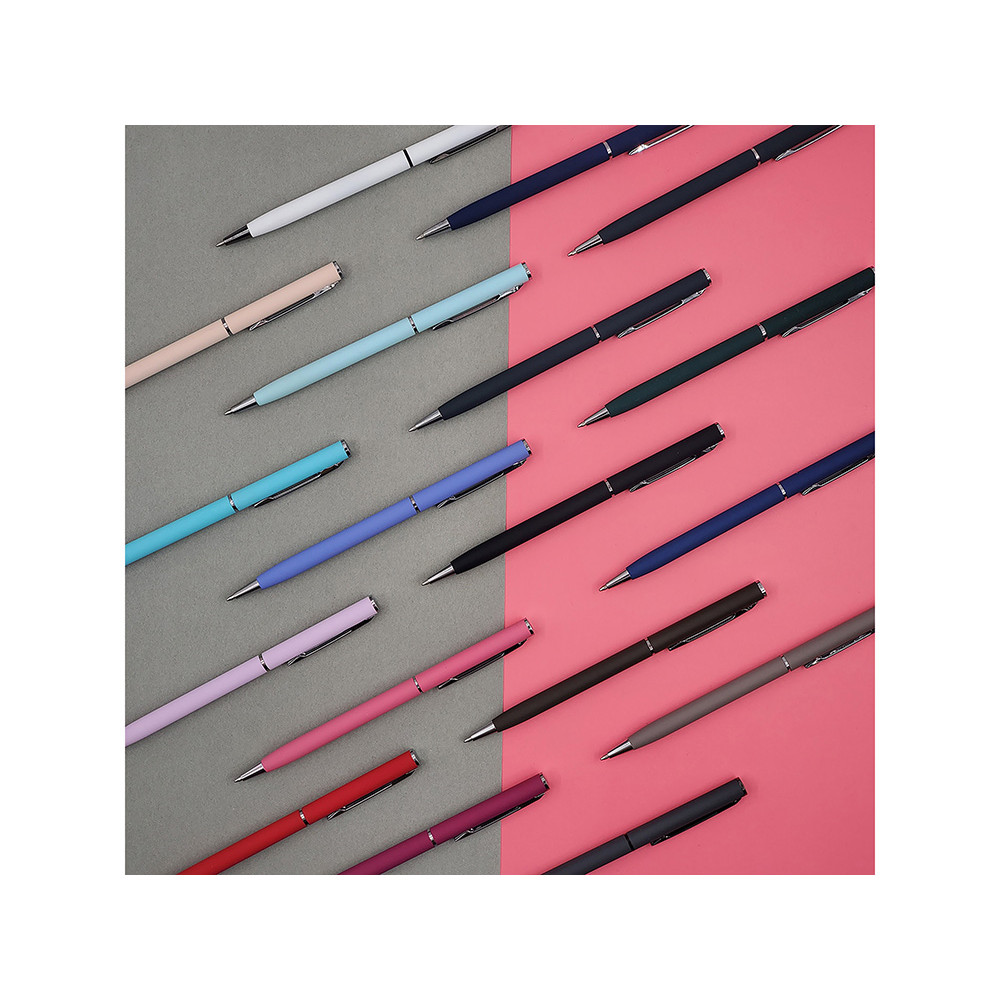 Автоматическая металлическая ручка Bruno Visconti серии Palermo однотонного цвета порадует любителей всего изящного и утонченного. Покрытие корпуса Soft Touch гарантирует дополнительный комфорт в работе с ней. Стержень легко выдвигается благодаря поворотному механизму. Синие пигментные чернила Dokumental (Германия) и пишущий узел Premec (Швейцария) обеспечивают качественное и мягкое письмо.