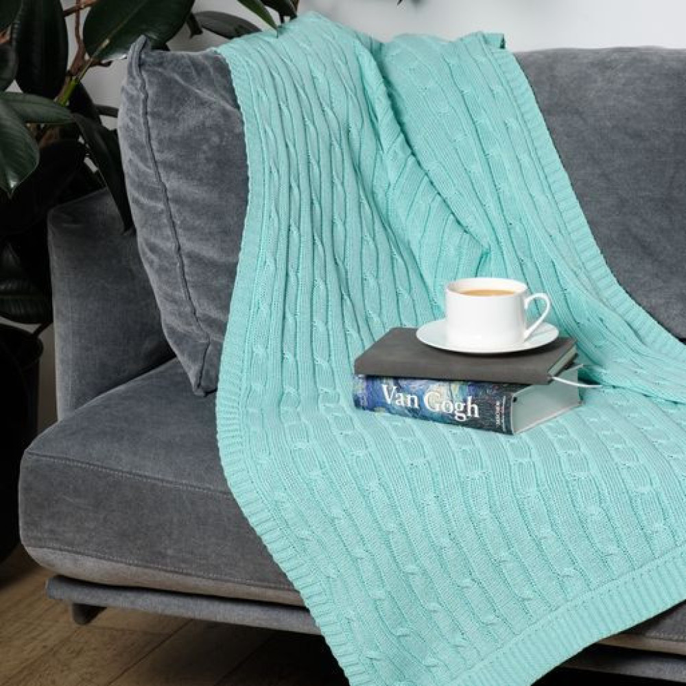 Плед Фадо (Fado) вязаный, аква (без подарочной коробки)