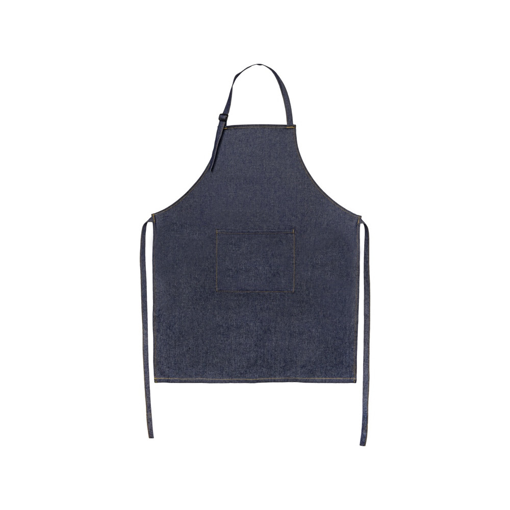 Плотный джинсовый фартук имеет большой вместительный карман.