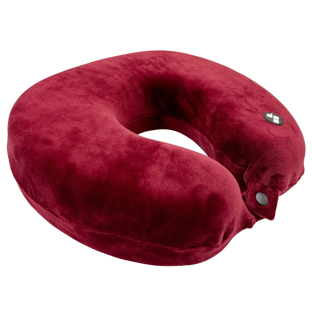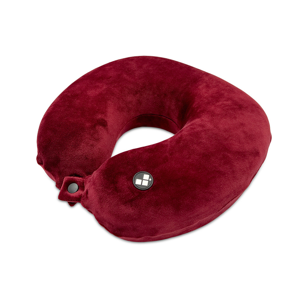 Удобная кнопочная застёжка надёжно фиксирует подушку на шее, а в комплект входит прочный круглый чехол на молнии — для компактного хранения и перевозки.