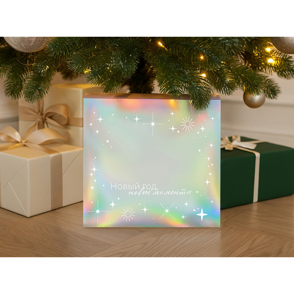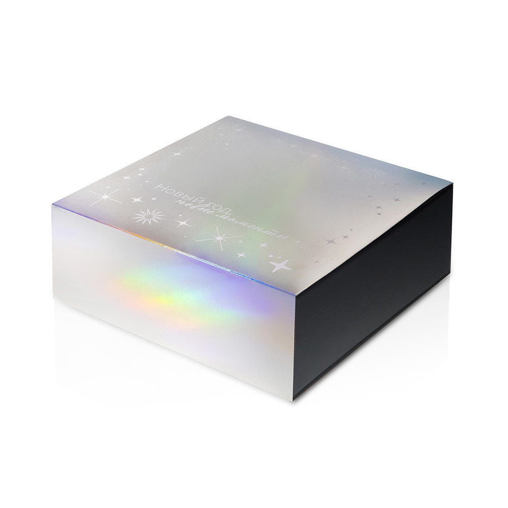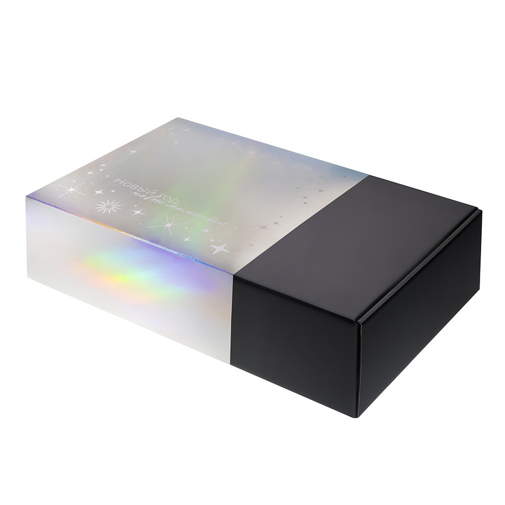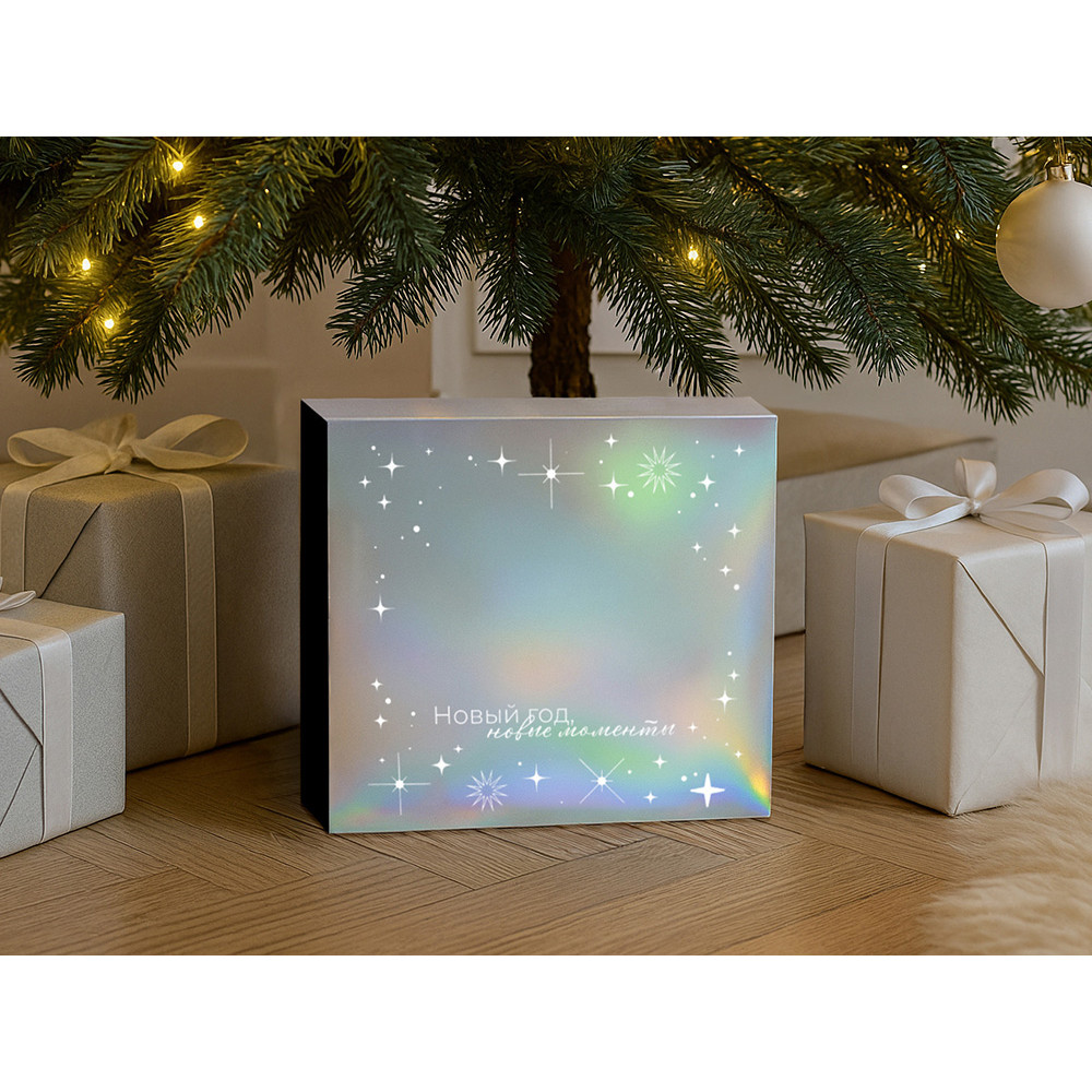 Упаковка — это первое впечатление о подарке. В преддверии Нового года особенно важно создать атмосферу праздника — стильная и аккуратно выполненная коробка с голографическим шубером сразу вызывает ощущение заботы, уюта и волшебного ожидания.